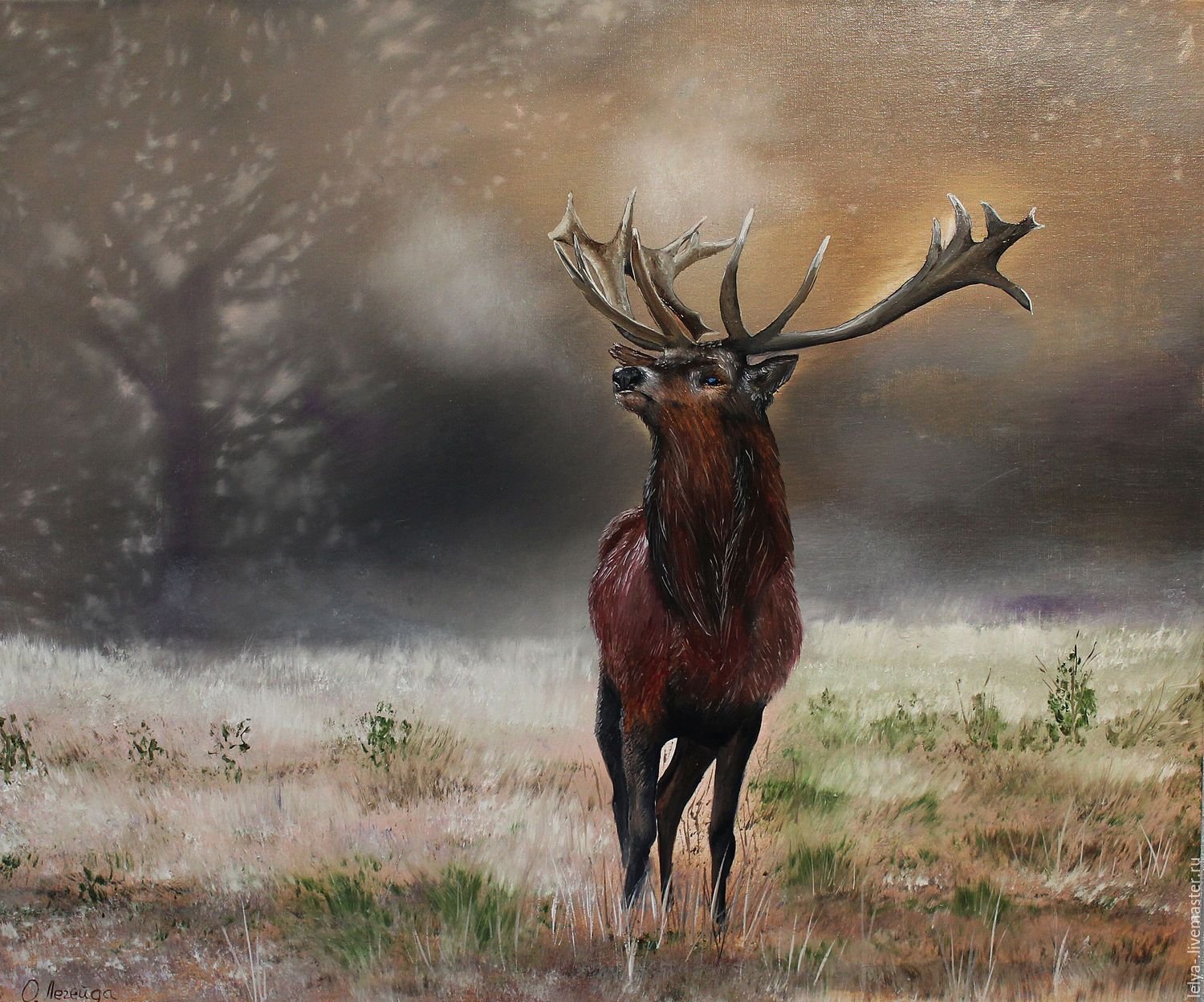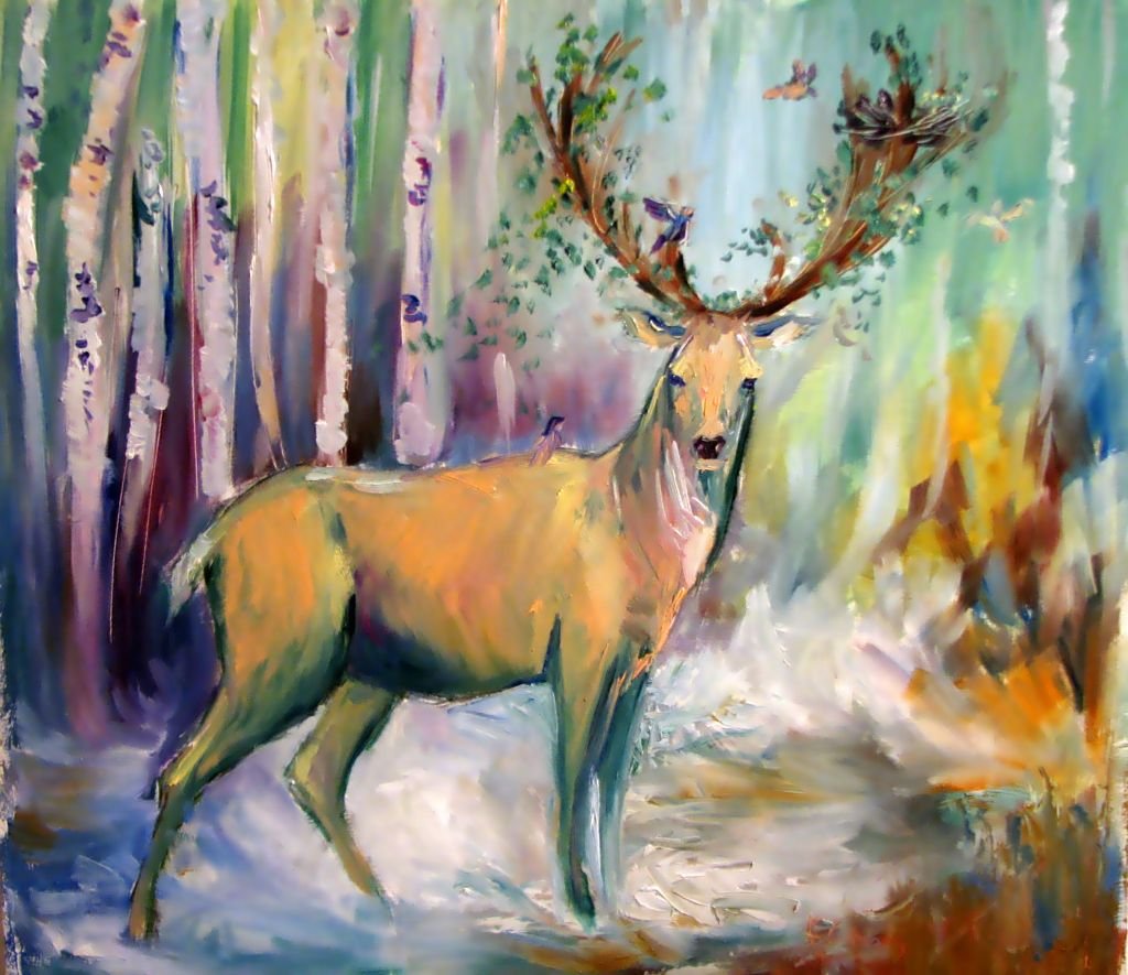 Олень живопись маслом