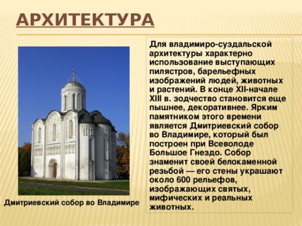 Архитектура Владимиро - Суздальского княжества XII-XIII ВВ.