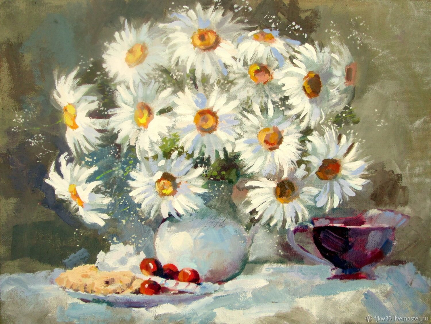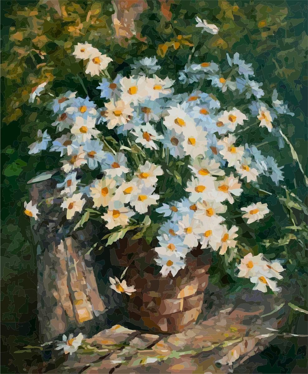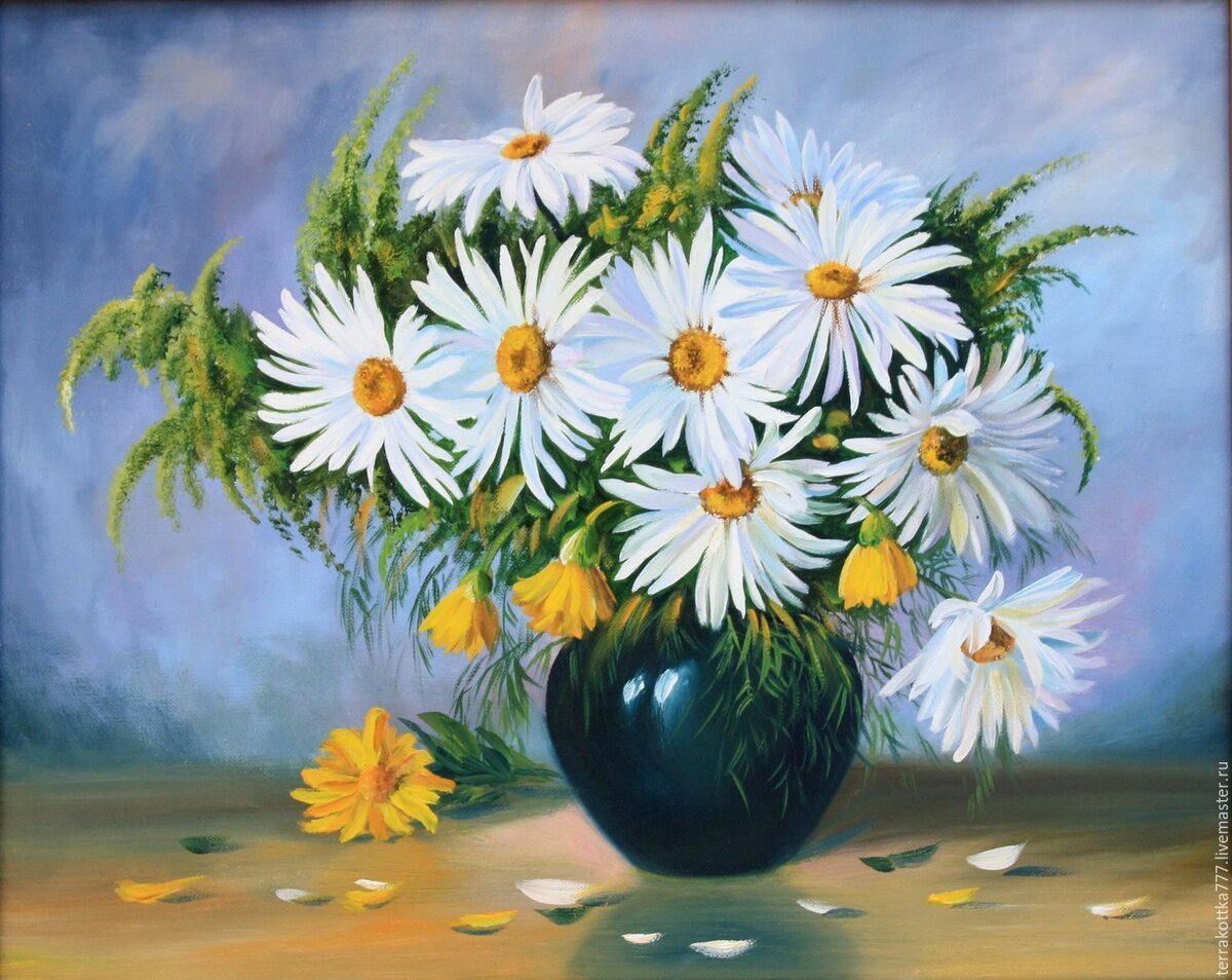 Ромашки в вазе живопись