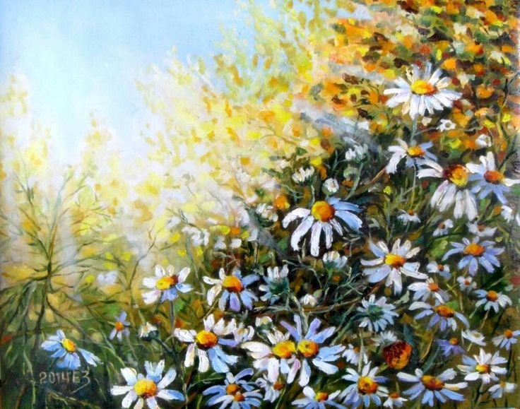 Живопись Елена Зорина, ромашки