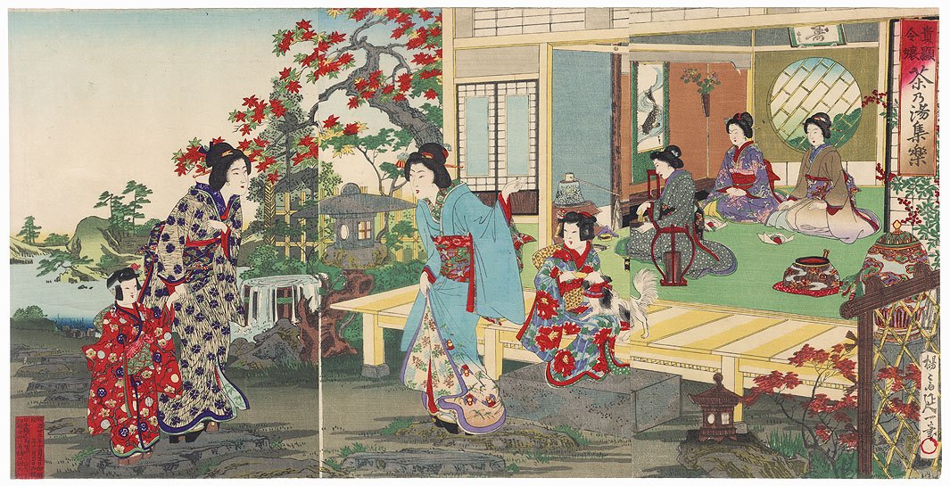 Японские Гравюры эпохи Мэйдзи чайная церемония