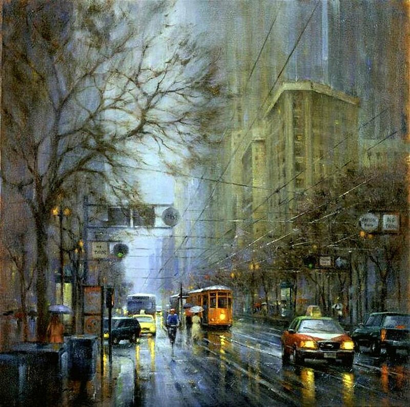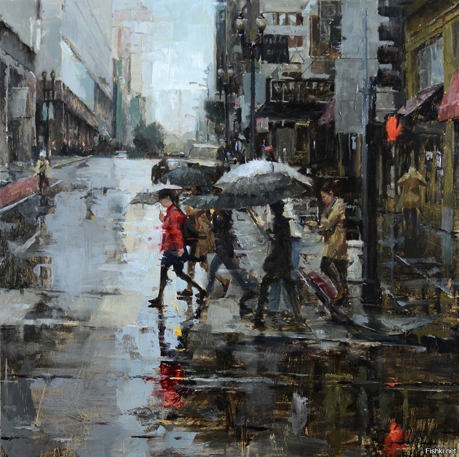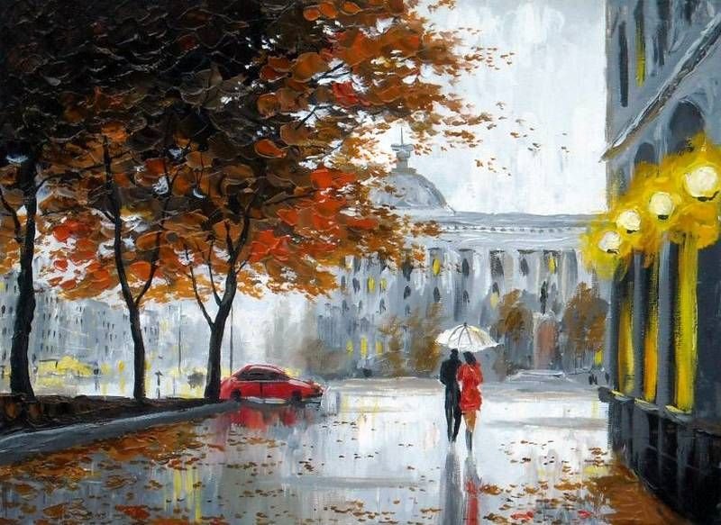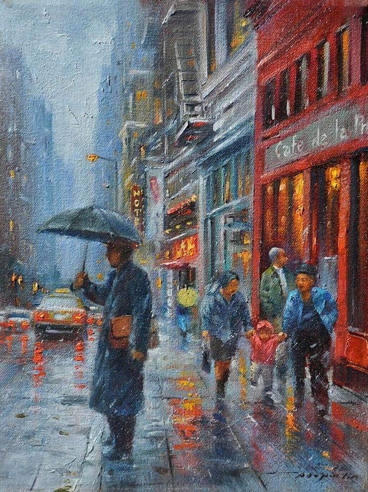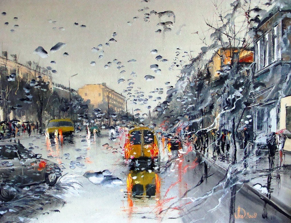Дождь в городе живопись