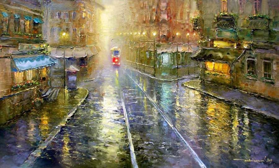 Живопись Питер трамвай дождь