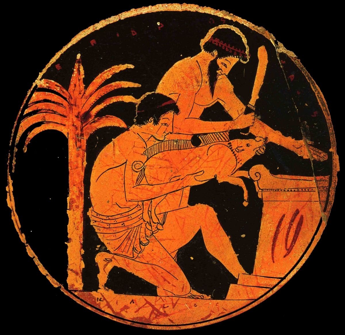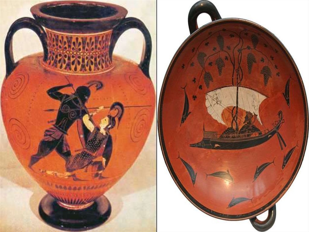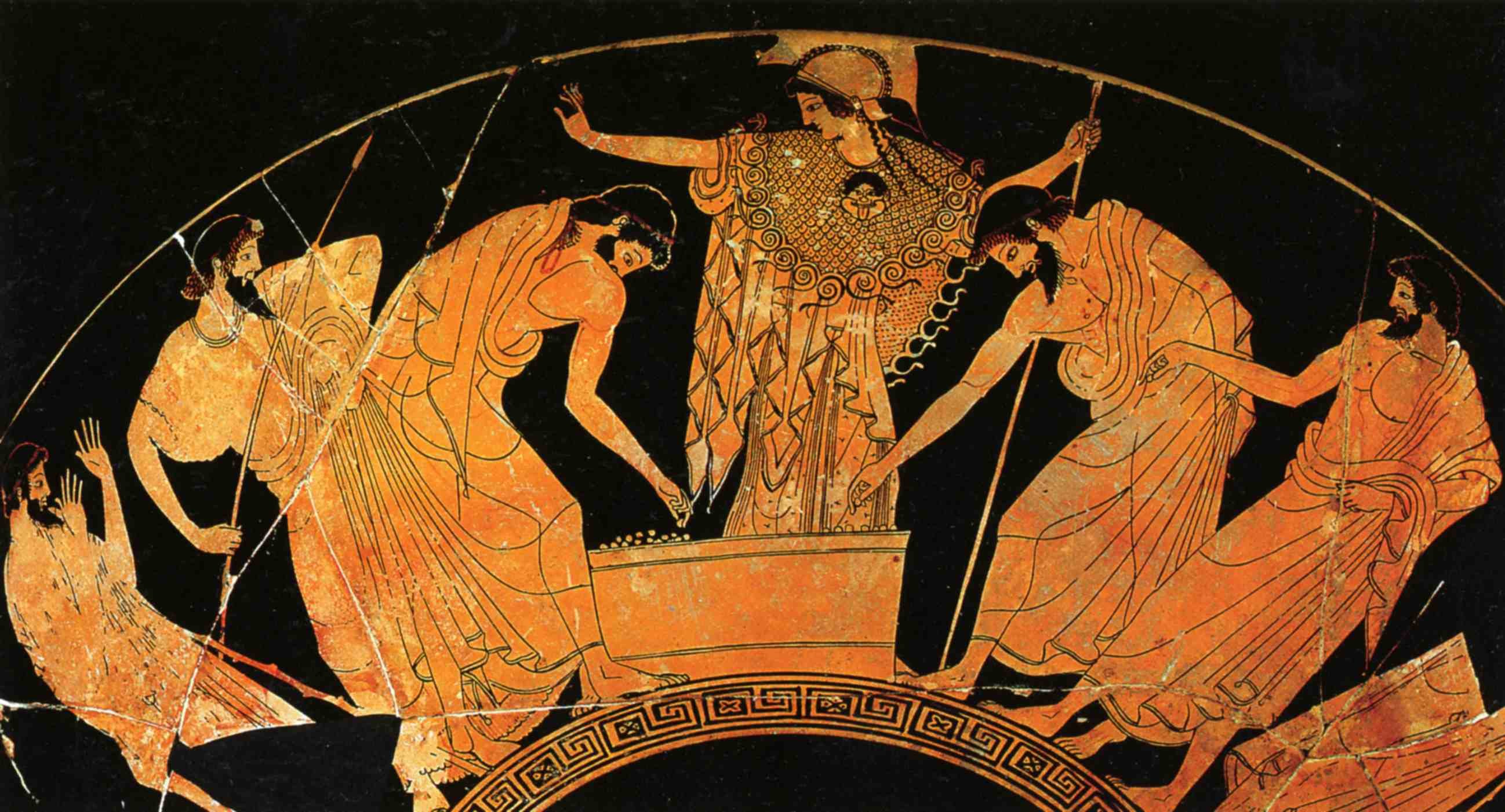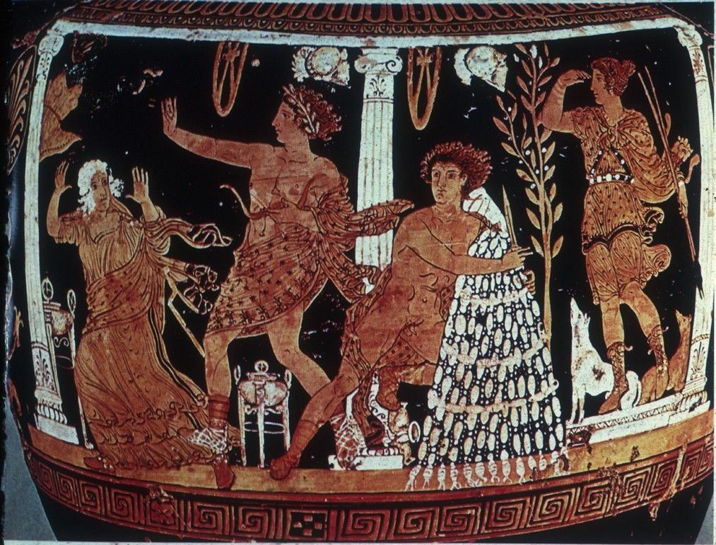 Краснофигурная вазопись Гефест, Дионис, гера 5 век до н.э.