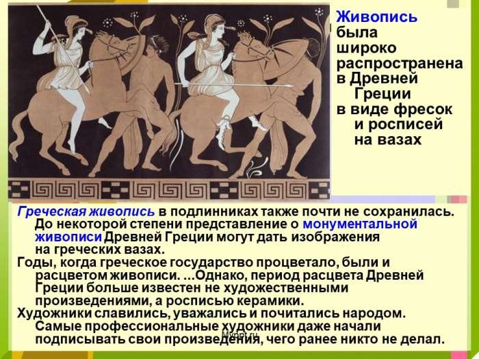 Живопись классического периода древней Греции является великолепным примером мастерства и эстетического совершенства. В это время художники стремились передать гармонию и идеалы красоты в своих произведениях. Одной из основных тем, которая часто представлялась на полотнах, была мифология и героические сюжеты. Художники отличались невероятной точностью и реализмом в изображении человеческой фигуры, а также использованием перспективы и светотени. Композиции были сбалансированными и гармоничными, а цвета - спокойными и уравновешенными. Живопись классического периода древней Греции до сих пор остается вдохновением для современных художников и поклонников искусства.