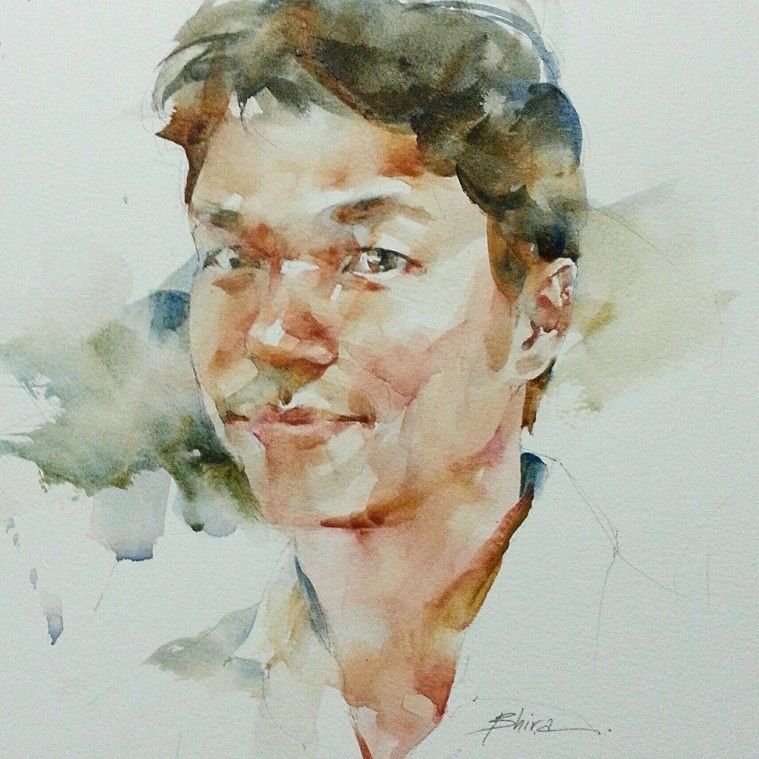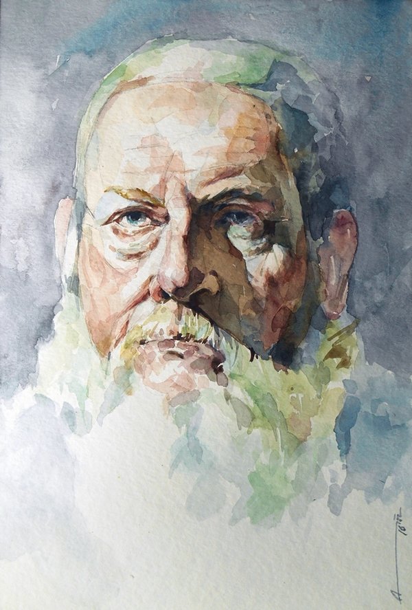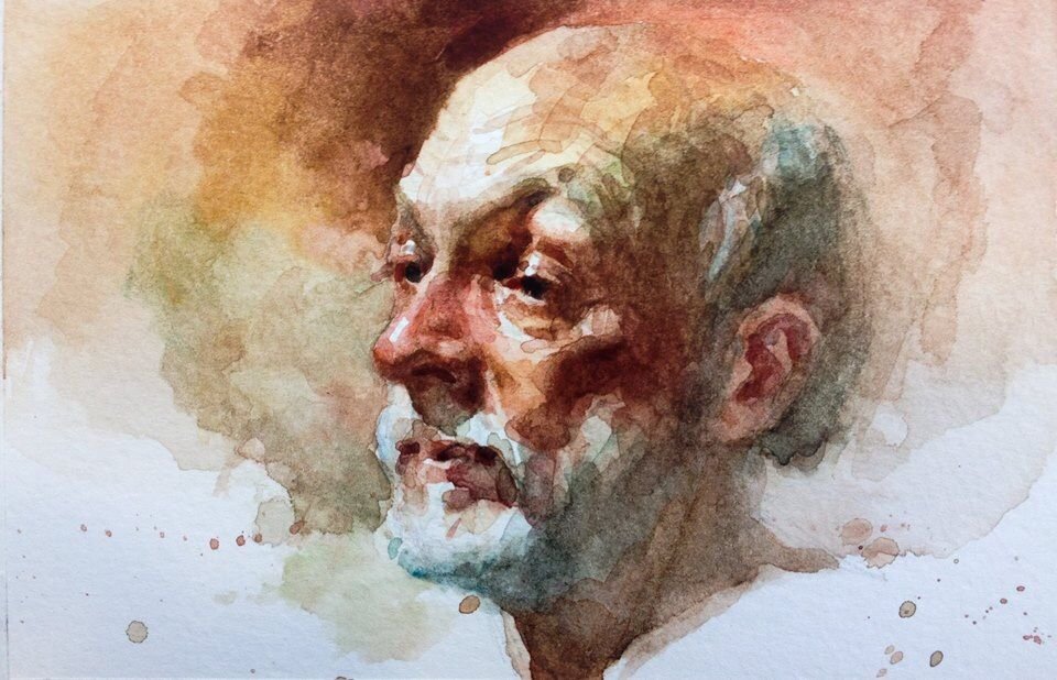 Лицо человека акварелью