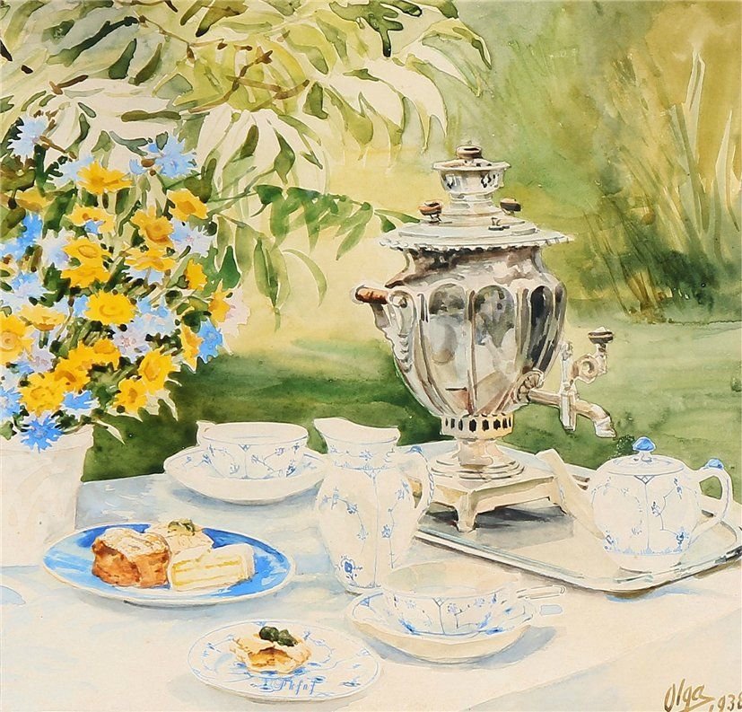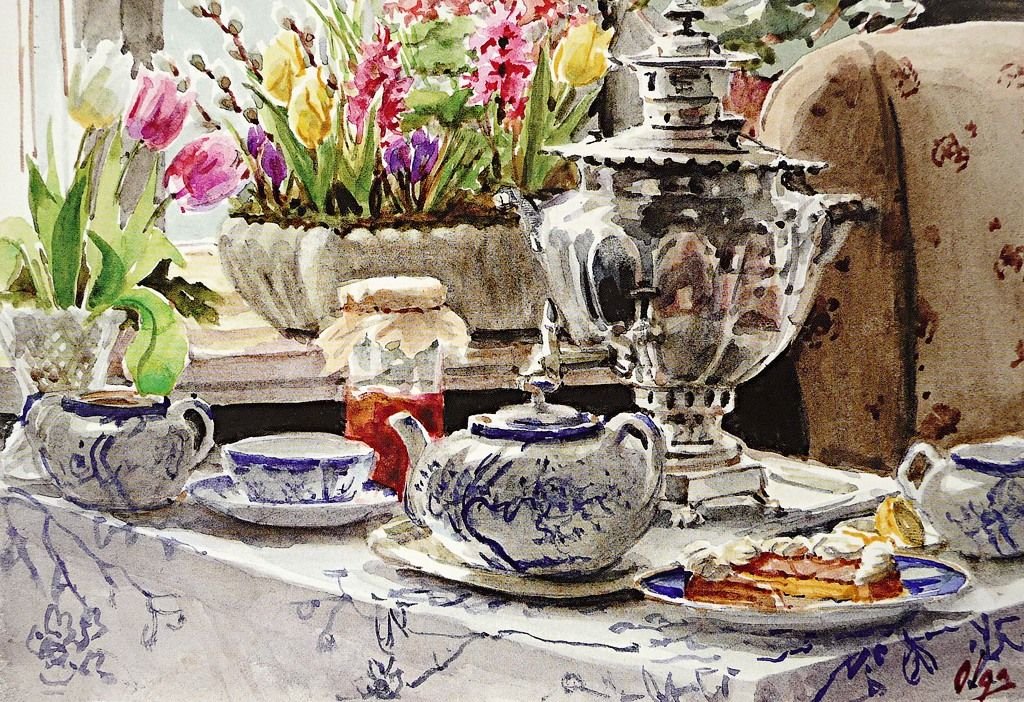 Акварели Ольги Александровны Романовой чаепитие