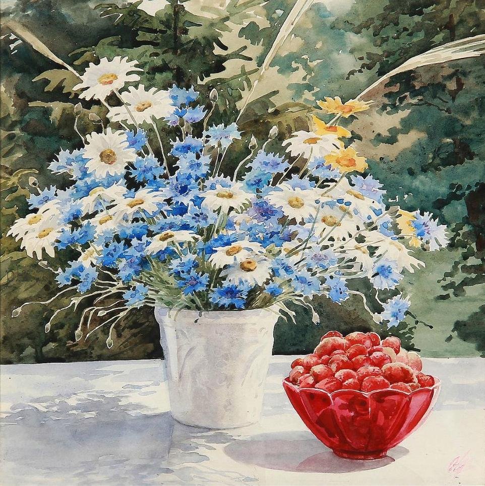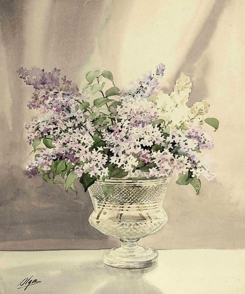 Цветочная акварели Великой княгини Ольги Александровны Романовой.
