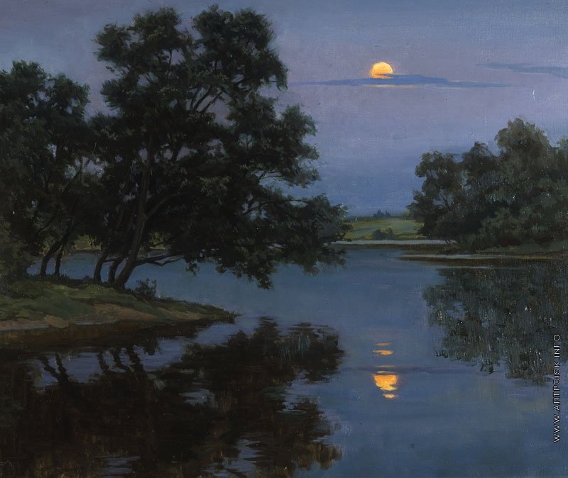 "Летняя ночь на реке", холст, масло. Станислав Александрович Брусилов.