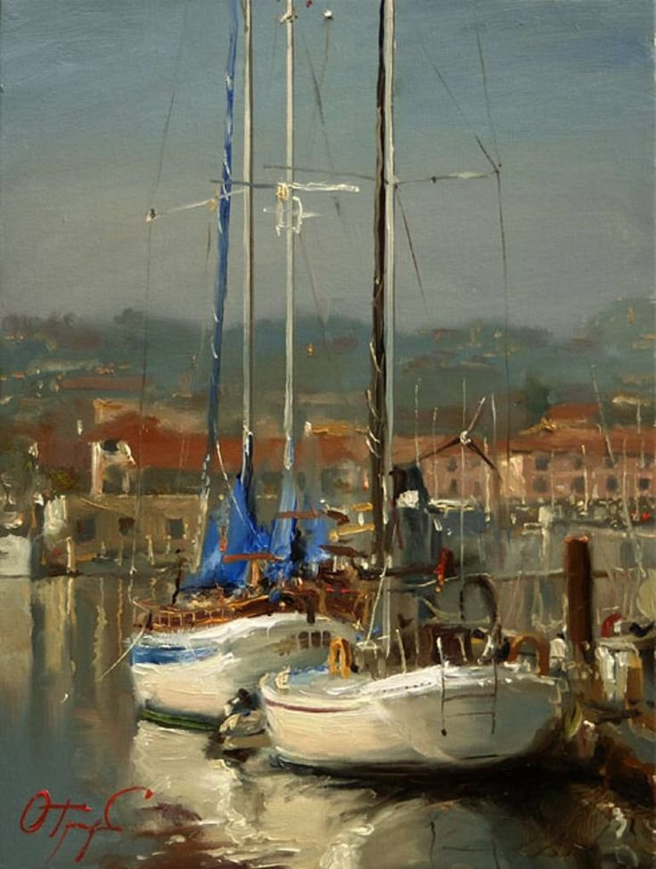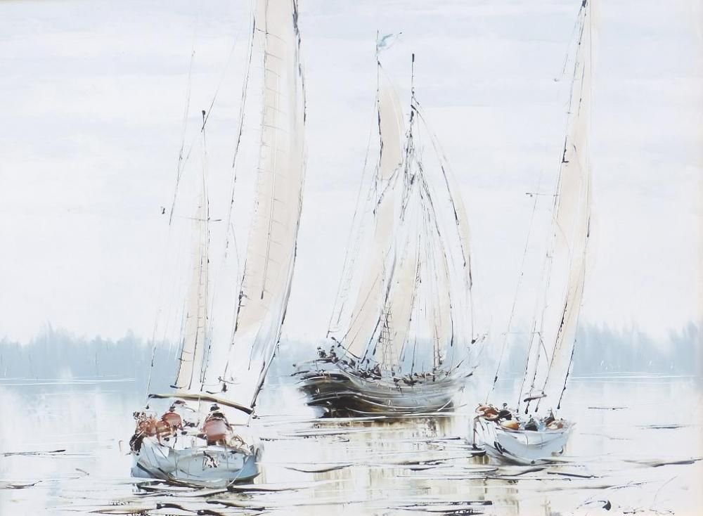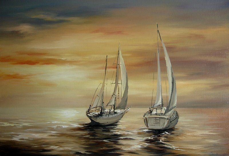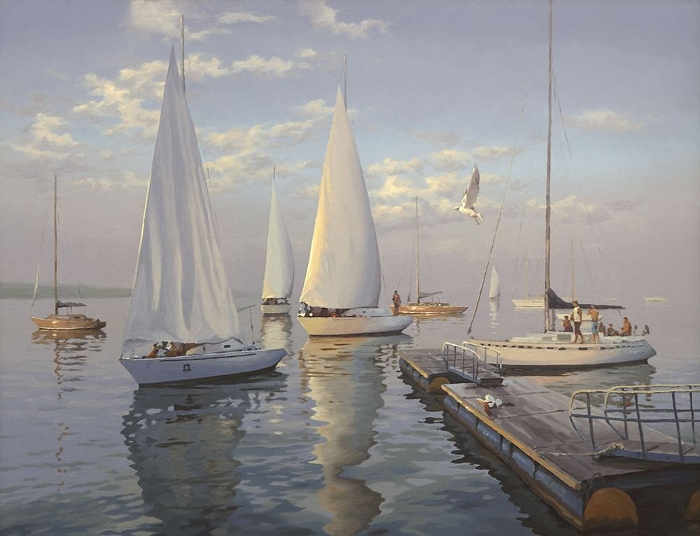 «Морской пейзаж с чайкой и яхтами» Дарья Куцаева