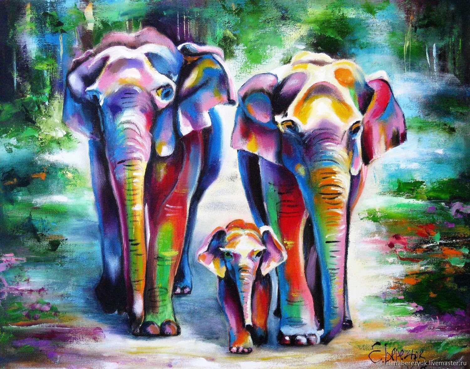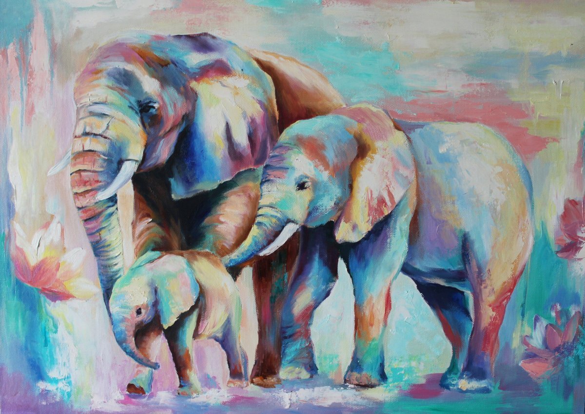 Живопись слоны маслом на холсте
