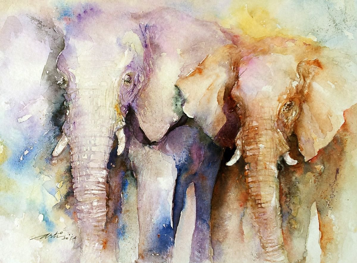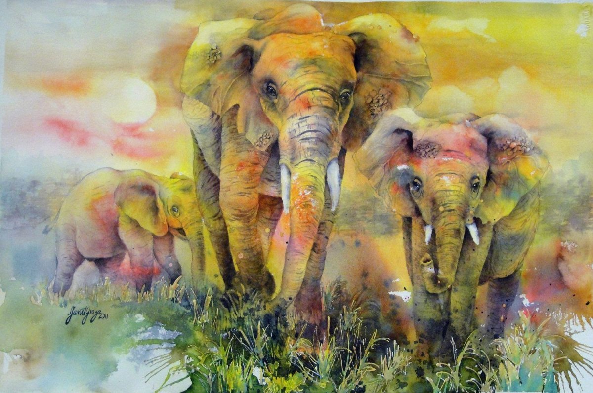 Слоны акварелью