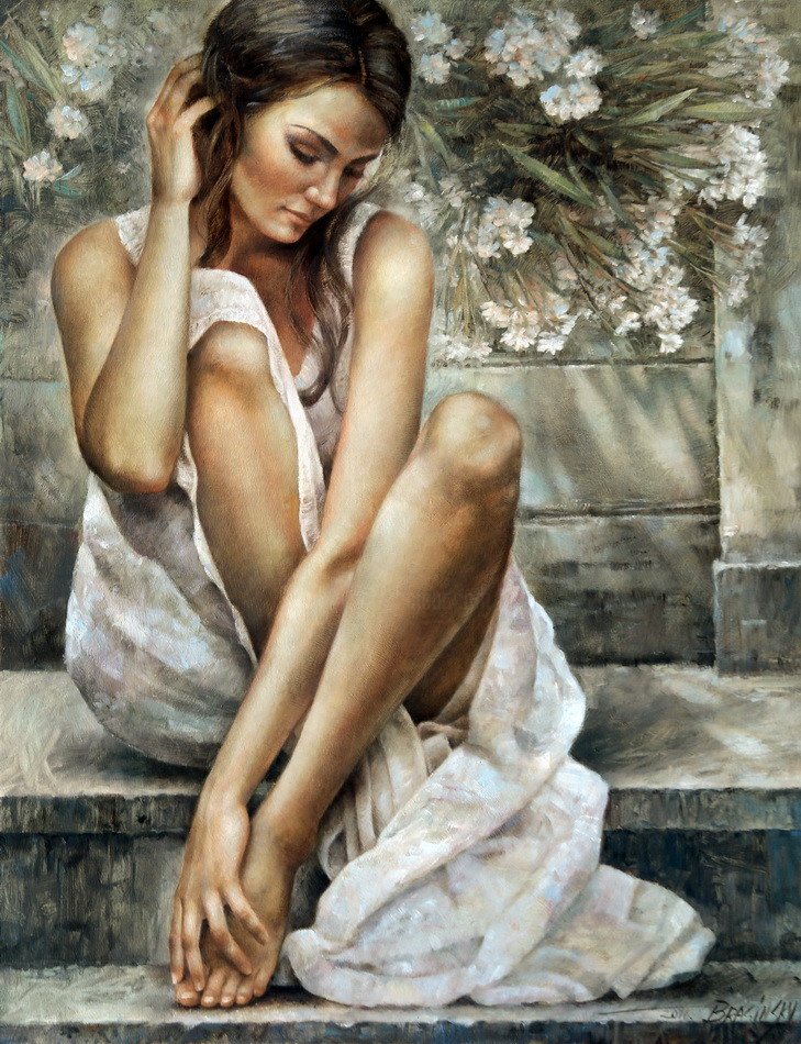 Артур Брагинский - талантливый художник, чья живопись воплощает красоту и эмоциональность женского образа. В его работах можно увидеть изысканные портреты, где каждая черта лица женщины наполнена глубокими чувствами и неповторимой индивидуальностью. Он мастерски передает пленительность женской грации, отображая ее величие и утонченность с помощью ярких цветовых решений и изысканной композиции. Живопись Артура Брагинского олицетворяет женскую красоту в ее самых разнообразных проявлениях, отразив при этом ее сложность и многогранность. Каждое его полотно — это путешествие в мир женской души, которая раскрывается перед зрителем во всей своей прекрасной и загадочной природе. Формы и линии в его работах играют особую роль, создавая гармоничное взаимодействие между фигурой и окружающим пространством. Живопись Артура Брагинского женщины - это искусство, которое проникает в душу зрителя, заставляя переживать эмоции и видеть красоту в ее самых нежных и глубинных проявлениях.