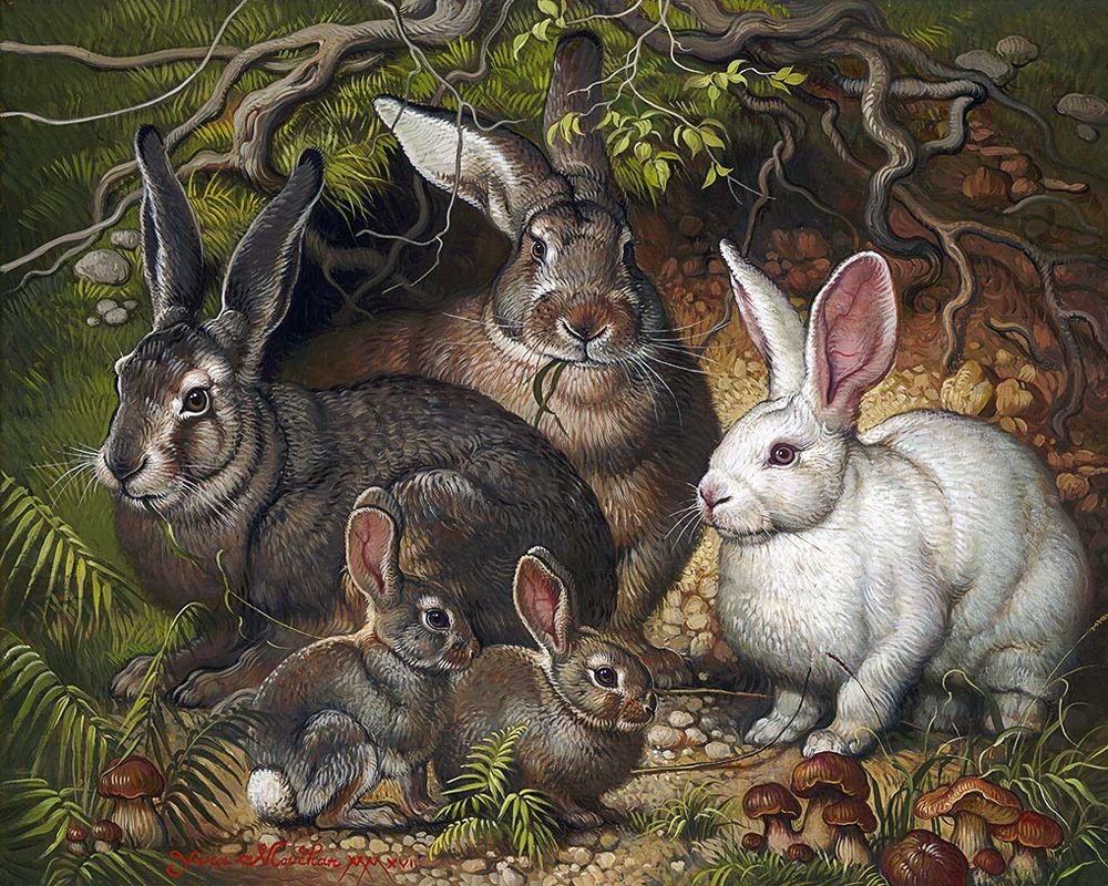 Зайцы и кролики являются неотъемлемой частью живописного искусства, внося свою особую атмосферу и символику. Они часто встречаются на полотнах различных художников, отображая природную красоту и живость этих милых животных. Зайцы и кролики символизируют нежность, игривость, а также природную цикличность и обновление. Их изображение может быть как реалистическим, передающим каждую деталь пушистой шерсти или изящности движений, так и символическим, подчеркивающим глубинные смыслы произведения и его связь с природой. Будь то знаменитые полотна фламандских мастеров, пейзажи в стиле импрессионизма или современные работы, зайцы и кролики всегда привлекают внимание своей природной прелести и способностью создать в искусстве особую атмосферу игры и волшебства.