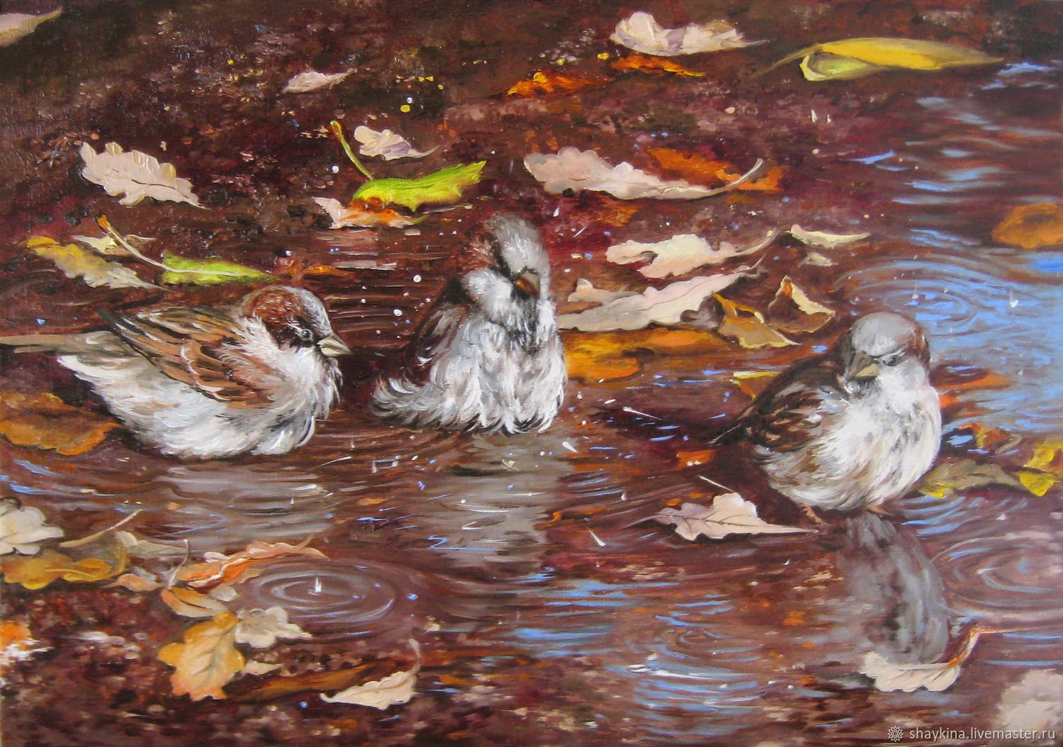 Картина осенний Воробей Неуступкина Людмила Аркадьевна