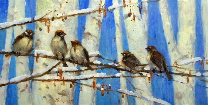 Прокопенко Александр Александрович. Воробьи. 2013. Холст. Масло