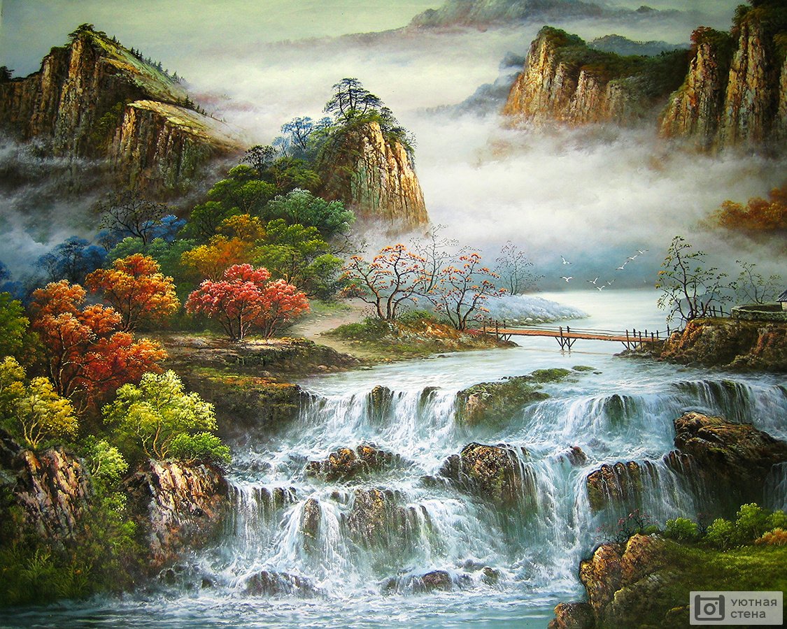 Живопись водопад - это уникальное и захватывающее искусство, которое передает красоту и мощь природного явления. Художники, создающие произведения на эту тему, по-настоящему воспроизводят игру света и тени на падающей воде, отражение деревьев и неба в брызгах и пены. Разнообразные текстуры и цветовые переходы помогают передать динамичность и энергию водопада. Картины с изображением водопадов создают особую атмосферу и притягивают взгляд зрителя, позволяя погрузиться в мир природной красоты и спокойствия. Независимо от стиля или техники, использованных художником, живопись водопад всегда вызывает восторг и восхищение своей потрясающей живостью и реалистичностью.