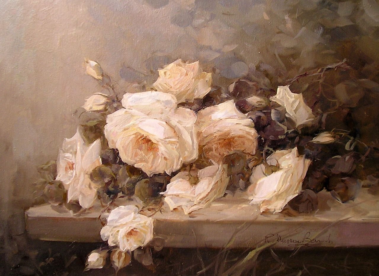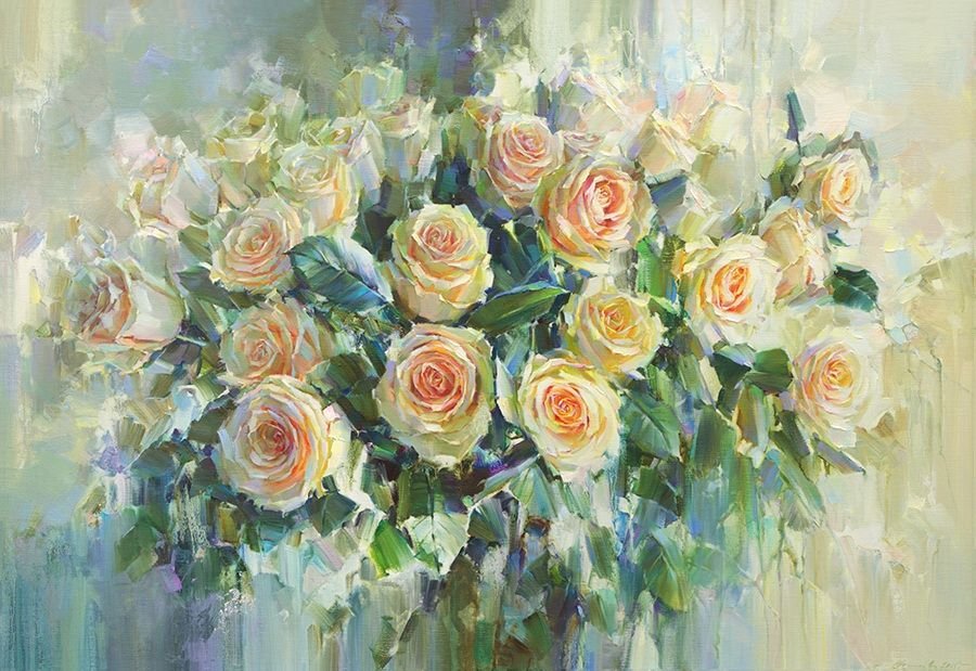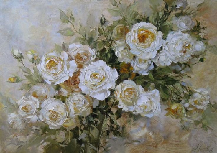 Белые розы картины маслом