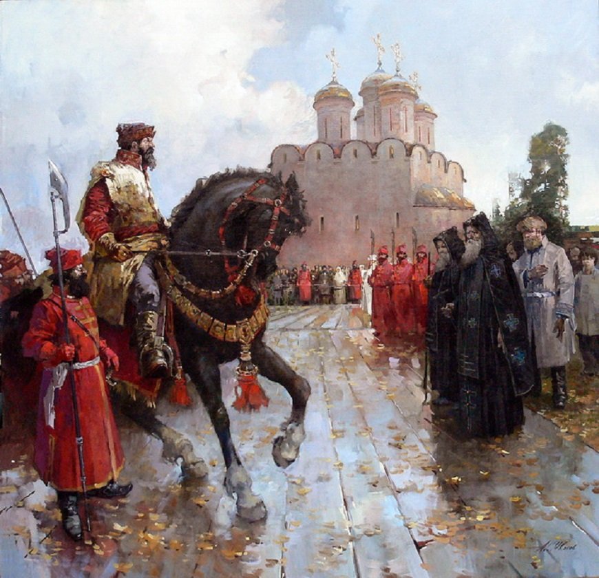 Репин приезд царей Иоанна и Петра Алексеевичей на Семеновский