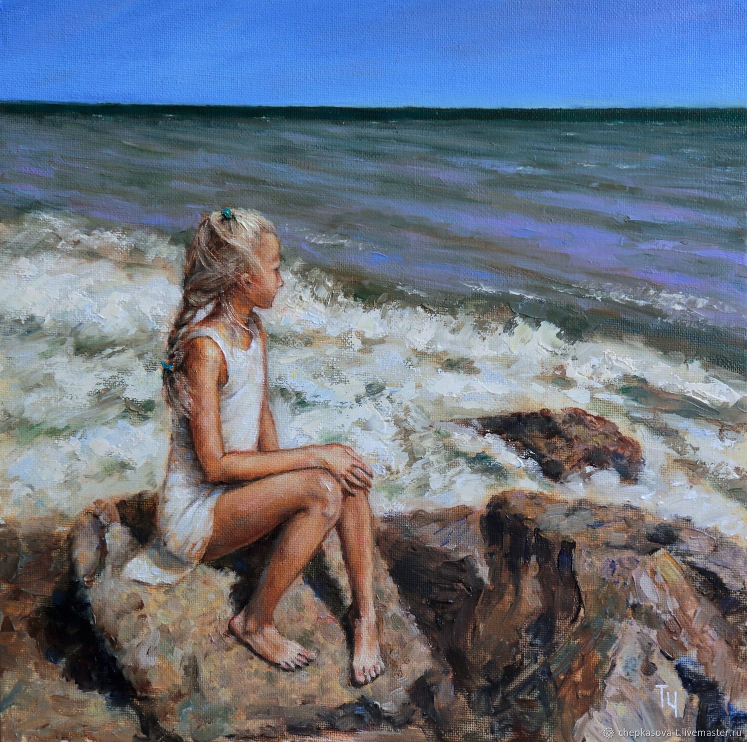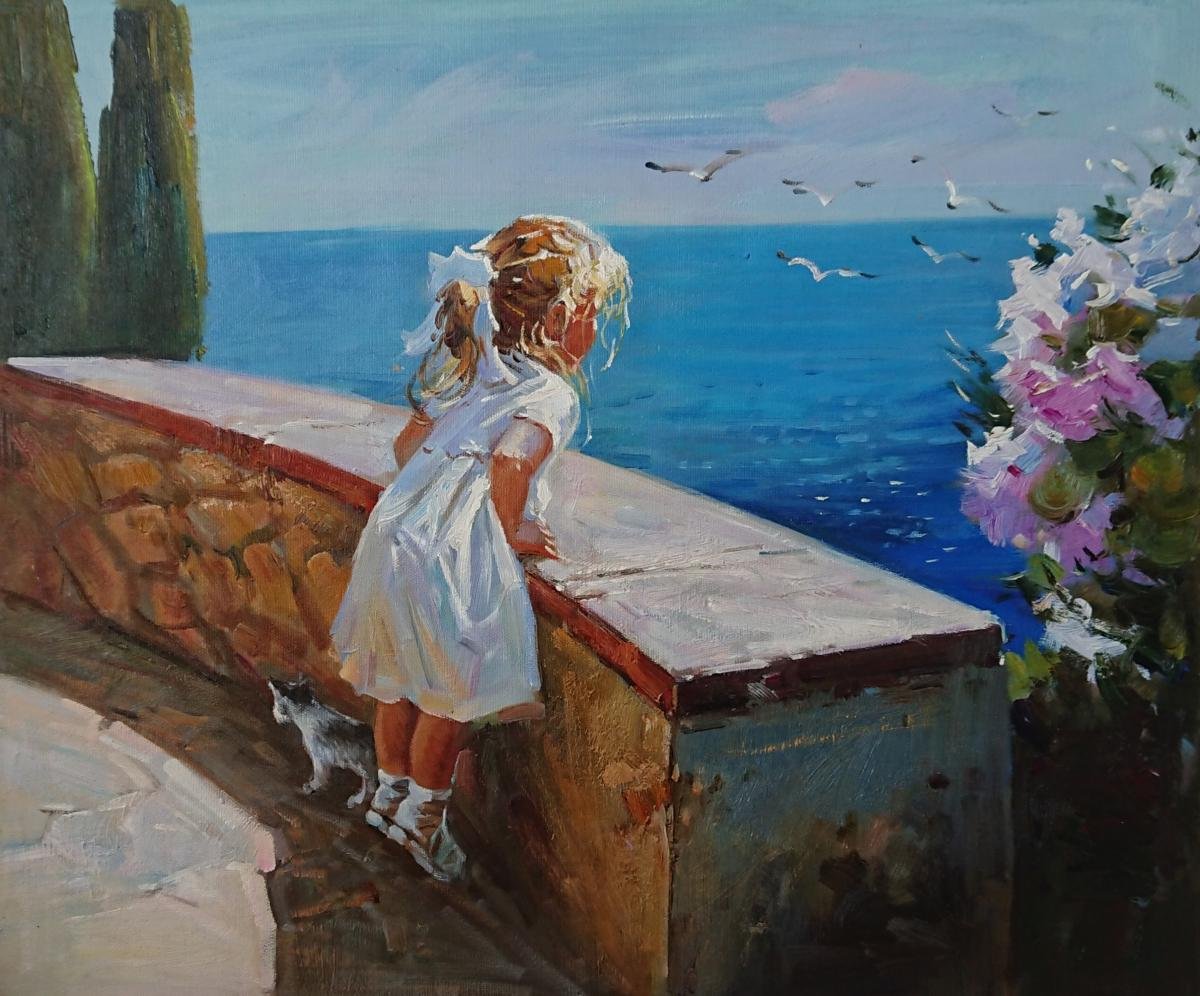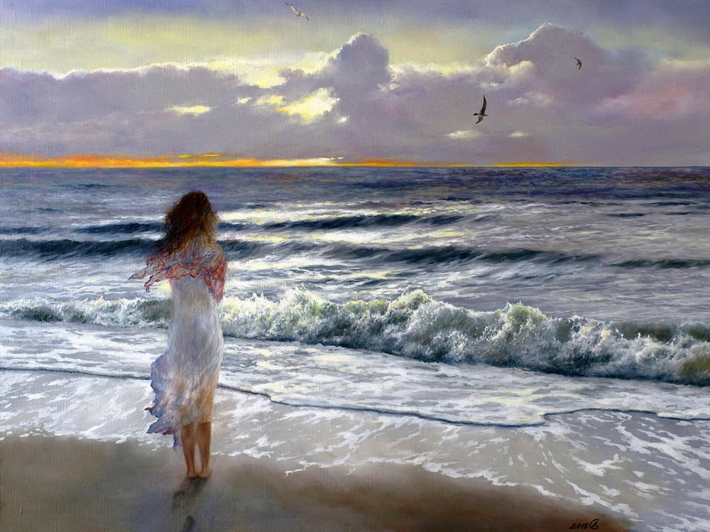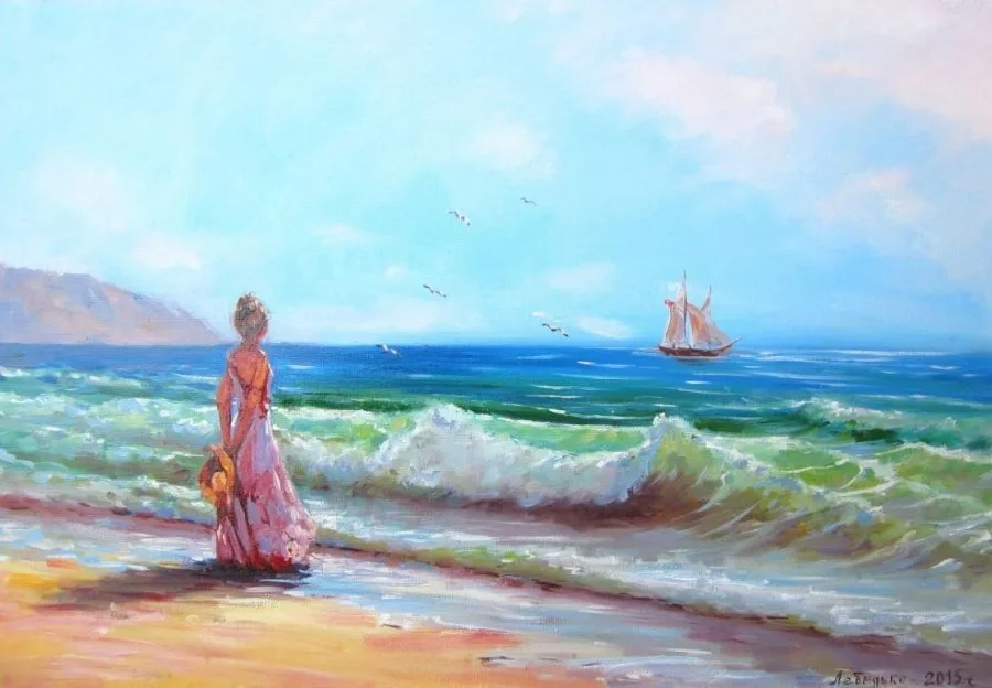 Девушка у моря картина