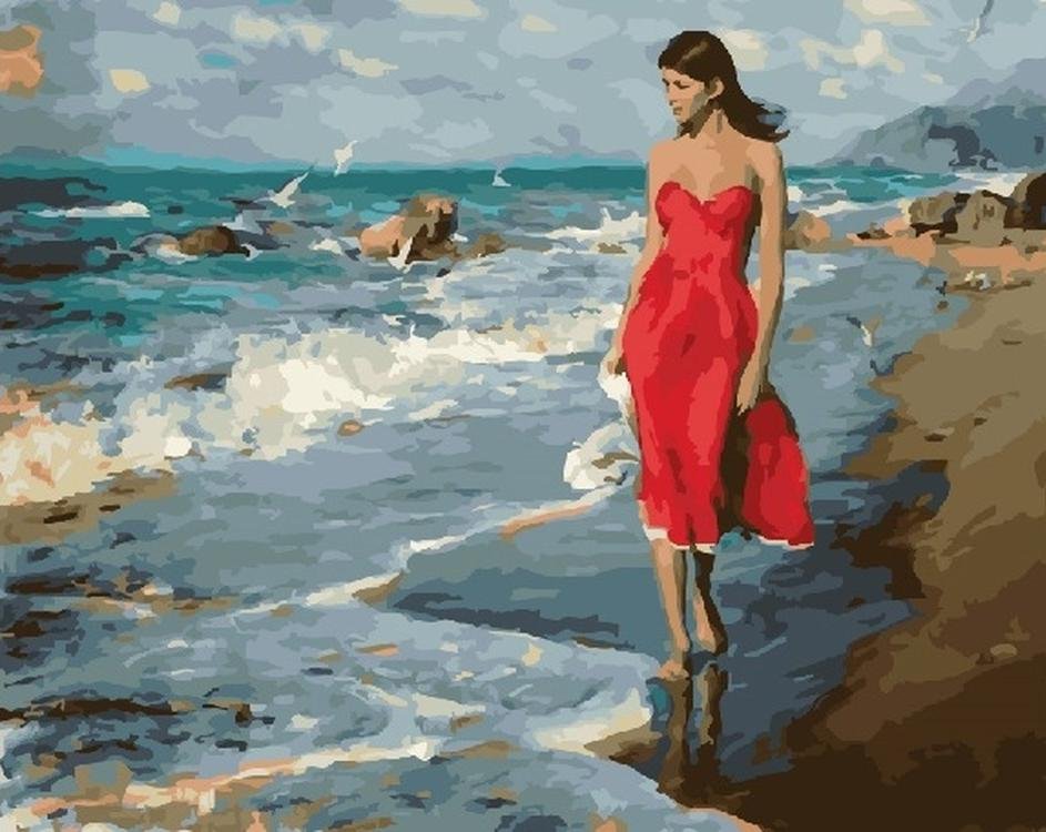 Женщина на берегу спиной рисунок