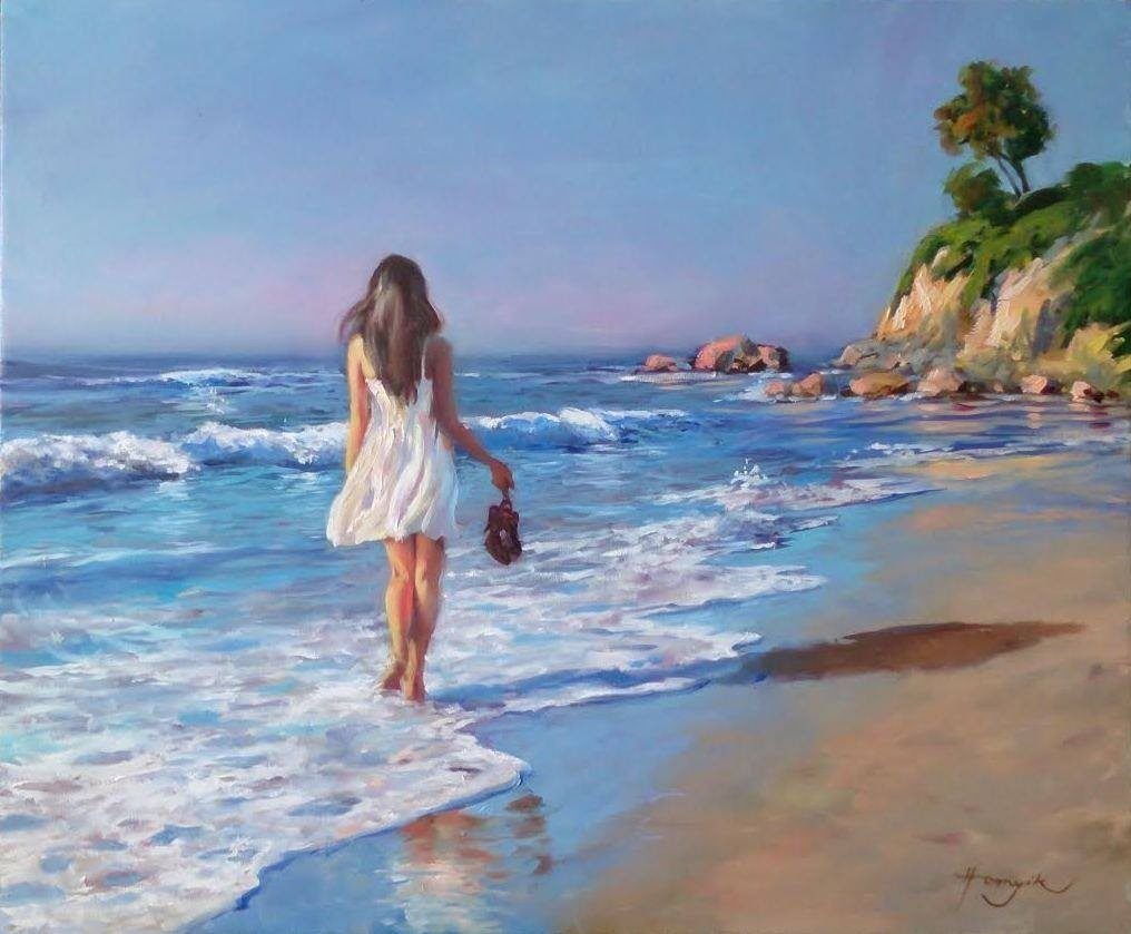 Гордон Кинг акварель женщина море