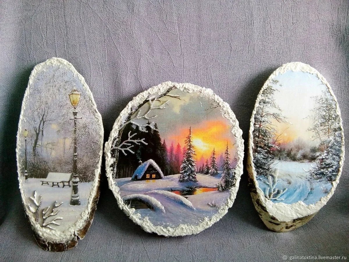 Рисунки на березовых спилах