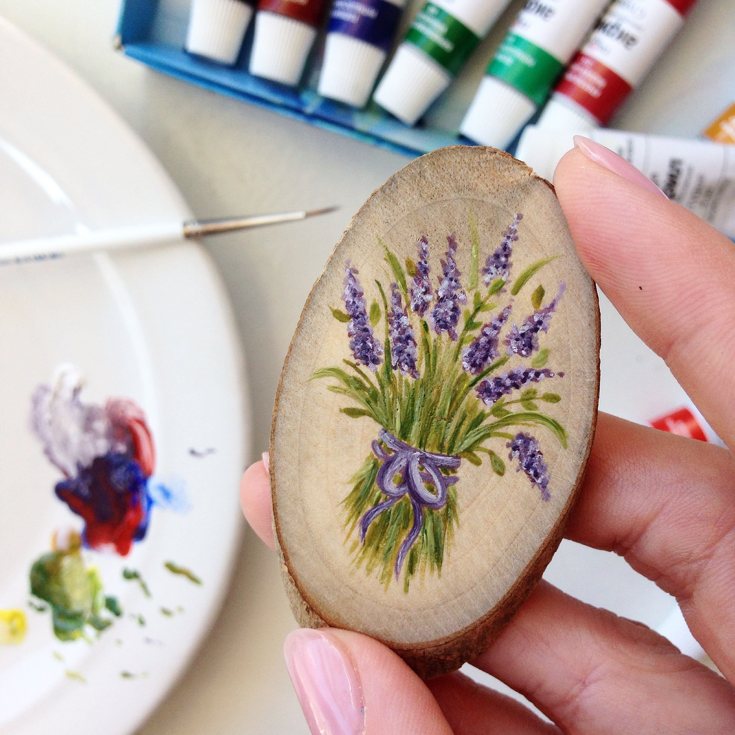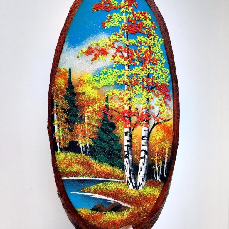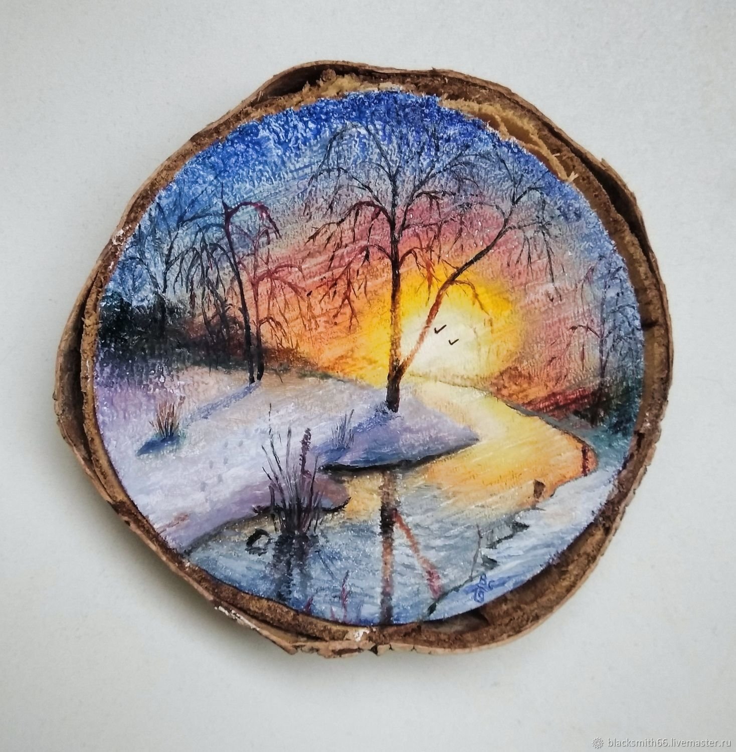 Роспись на срезе дерева