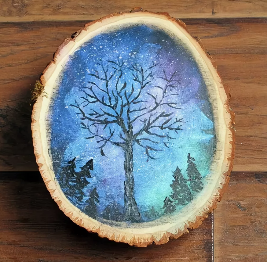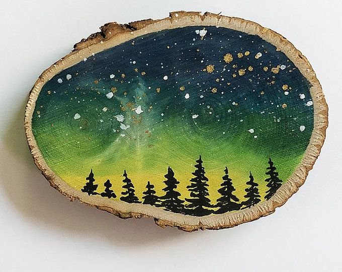 Рисование на спиле дерева Северное сияние
