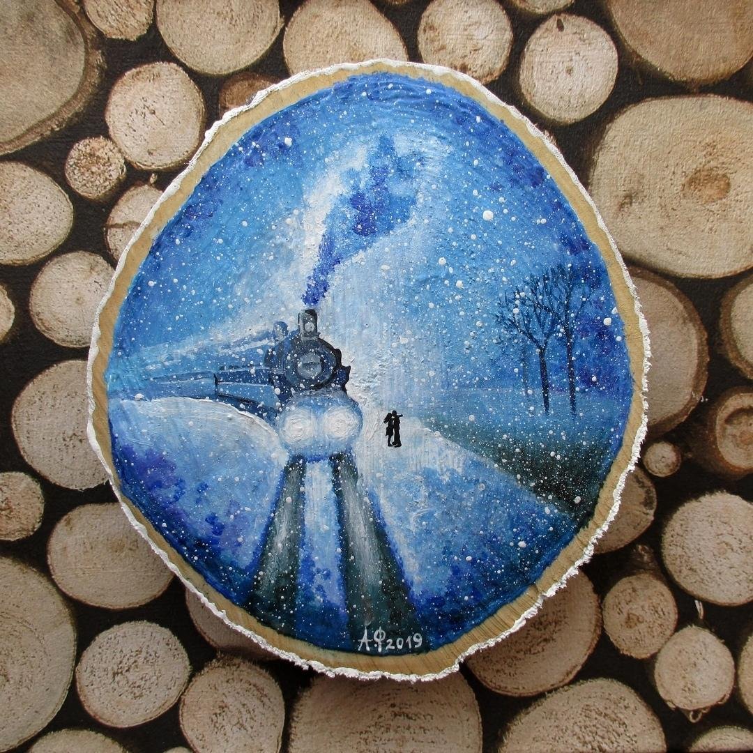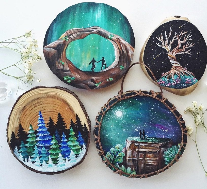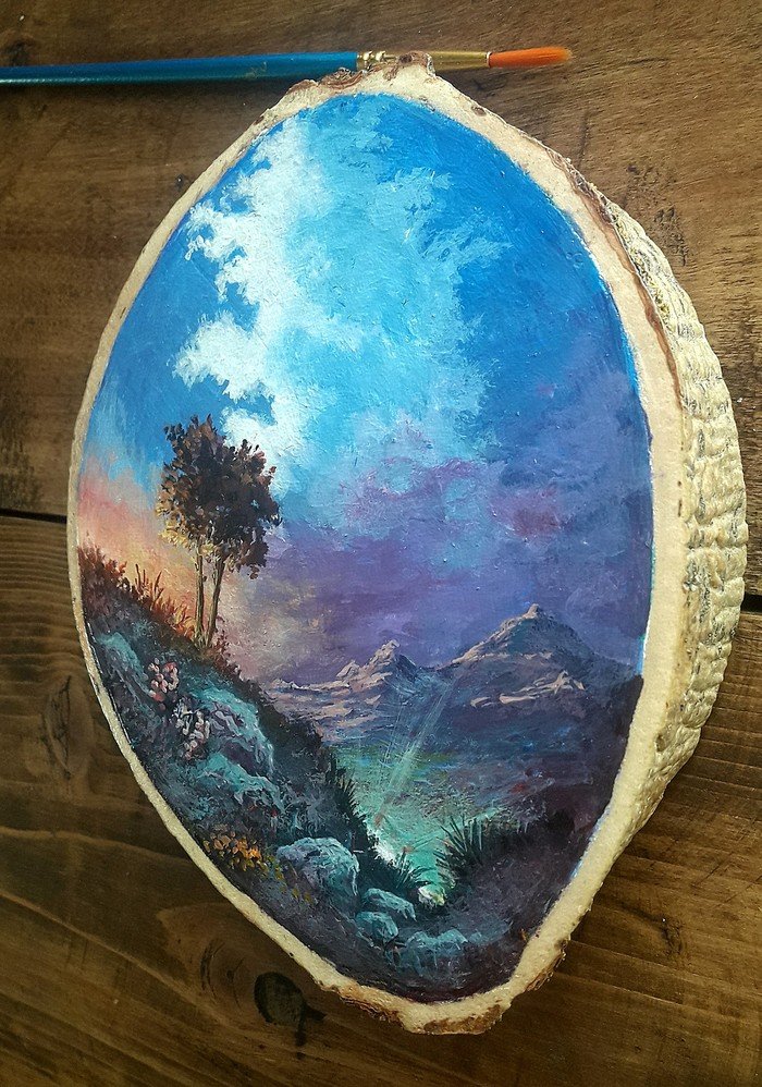 Живопись на срезе дерева