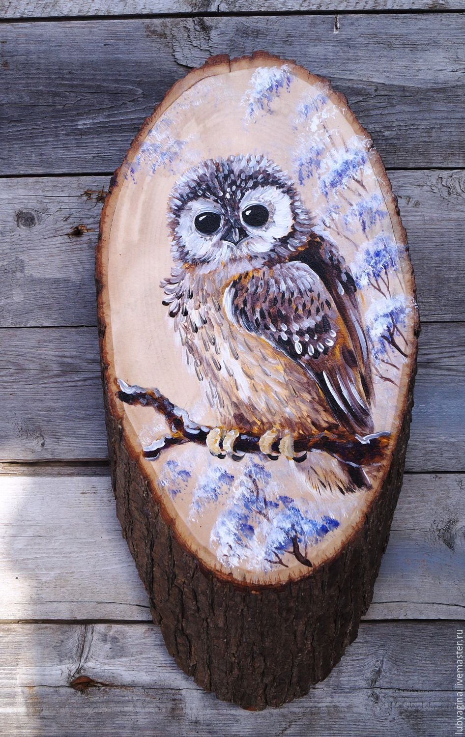 Роспись на спилах дерева акриловыми