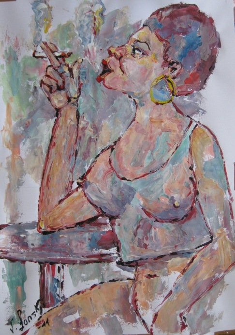 Картина тетка сидит портрет