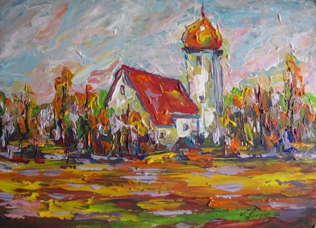 Достопримечательности Тольятти рисунки Церковь в осеннем колорите