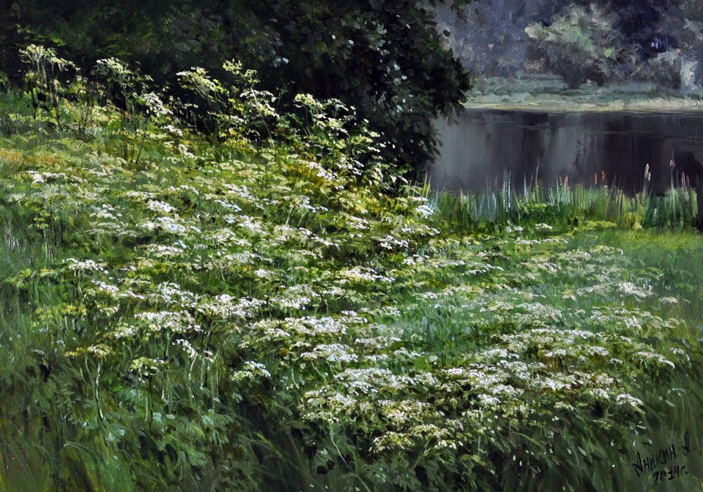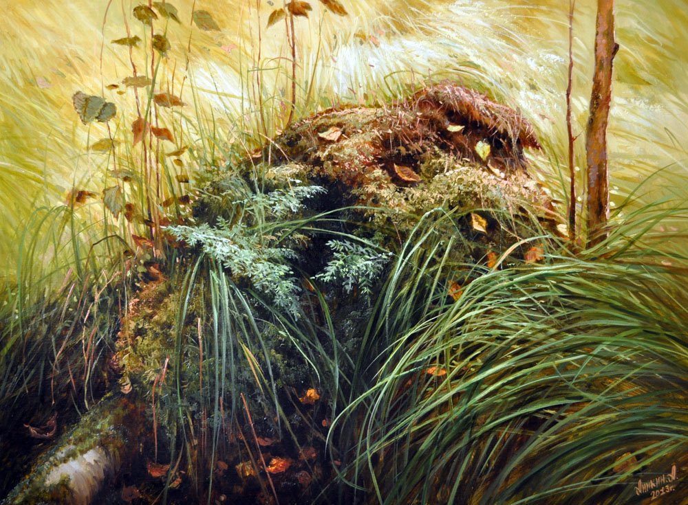 Трава в живописи маслом