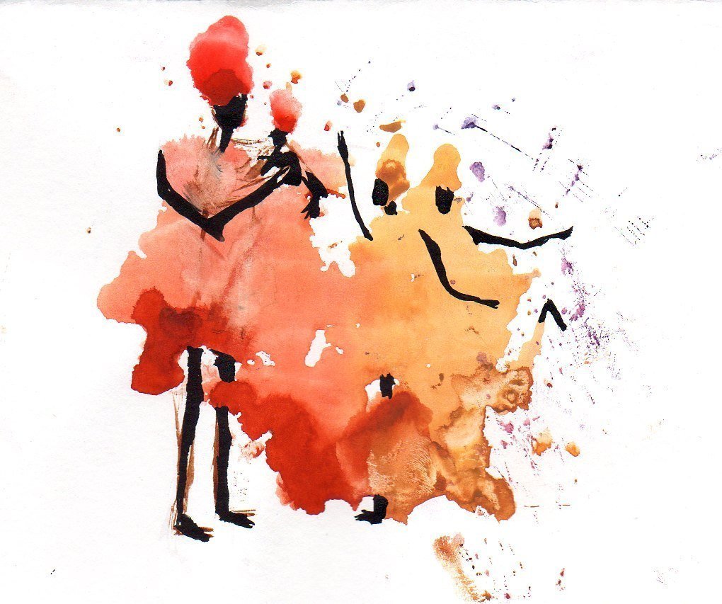 Силуэты людей акварелью