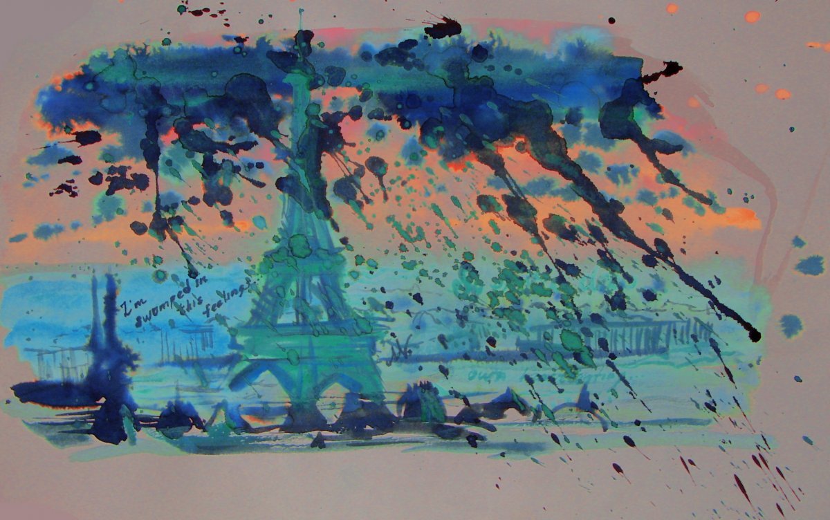 Акварель с гелевой ручкой