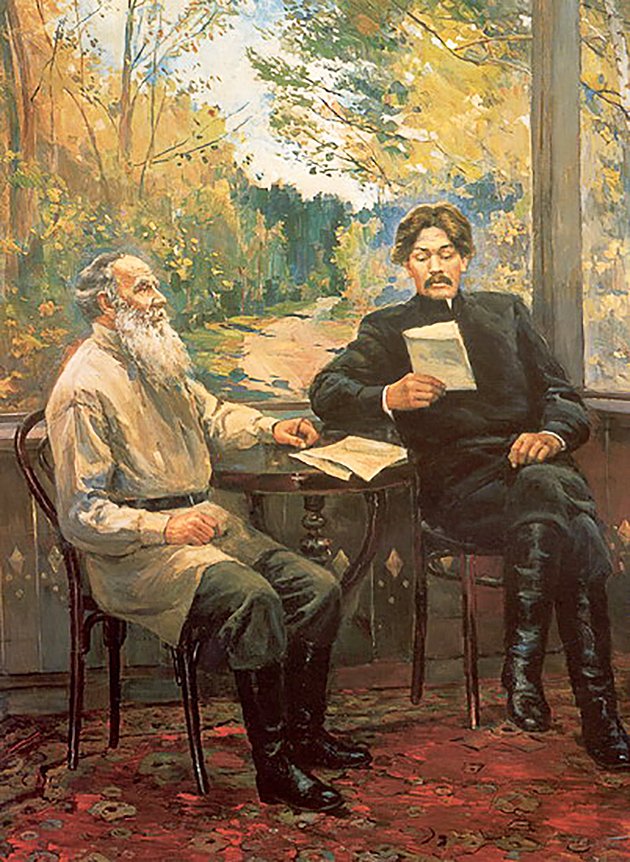 Максим Горький и Лев толстой в Ясной Поляне