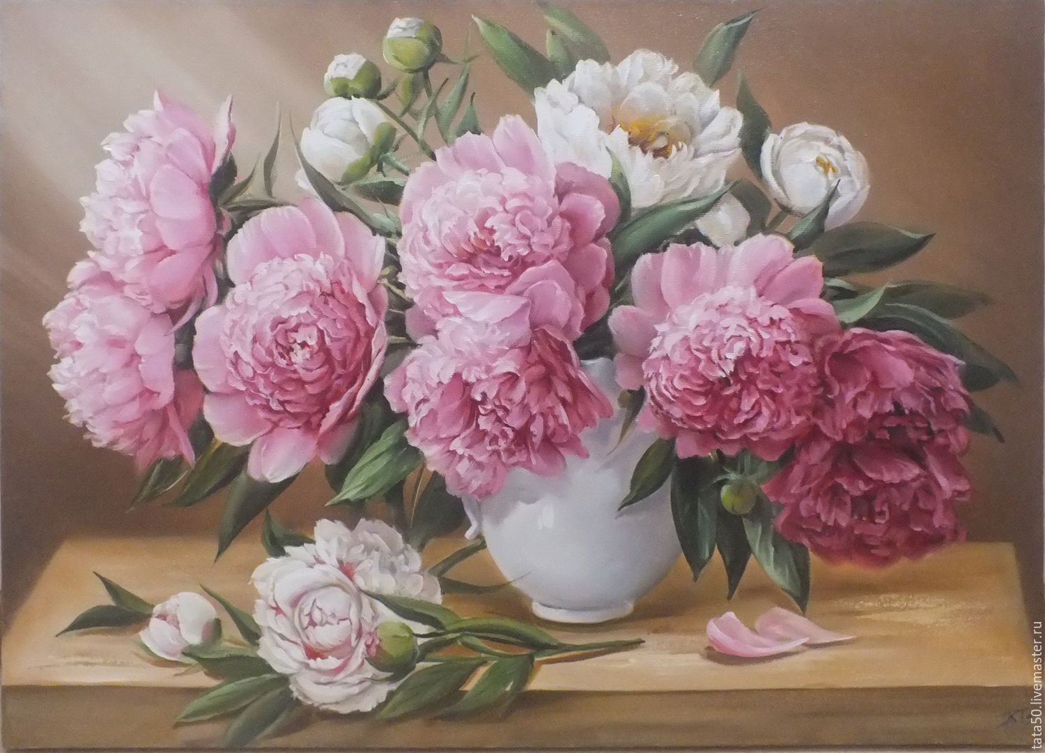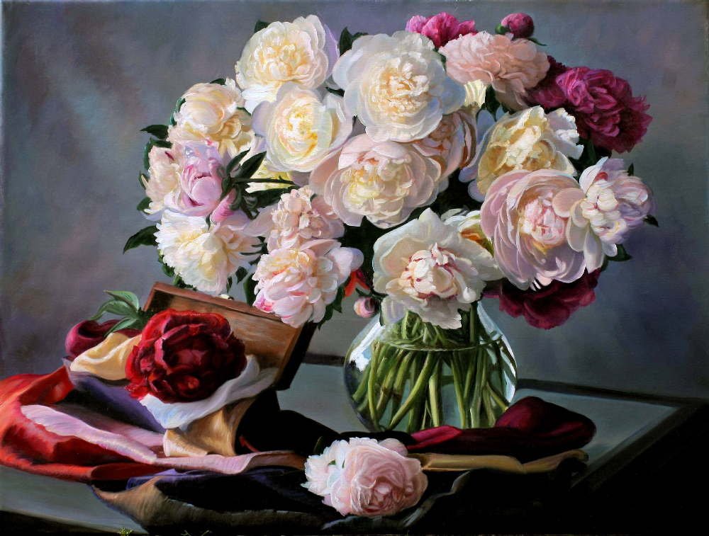 Кукуйцев в.в. пионы .натюрморт. Живопись.
