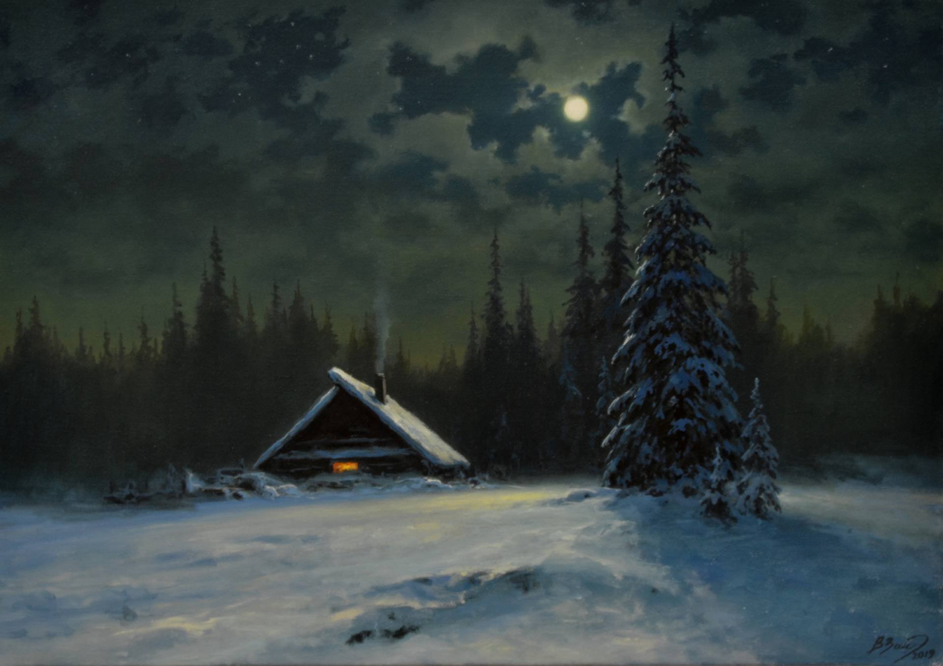 Ночной зимний пейзаж живопись