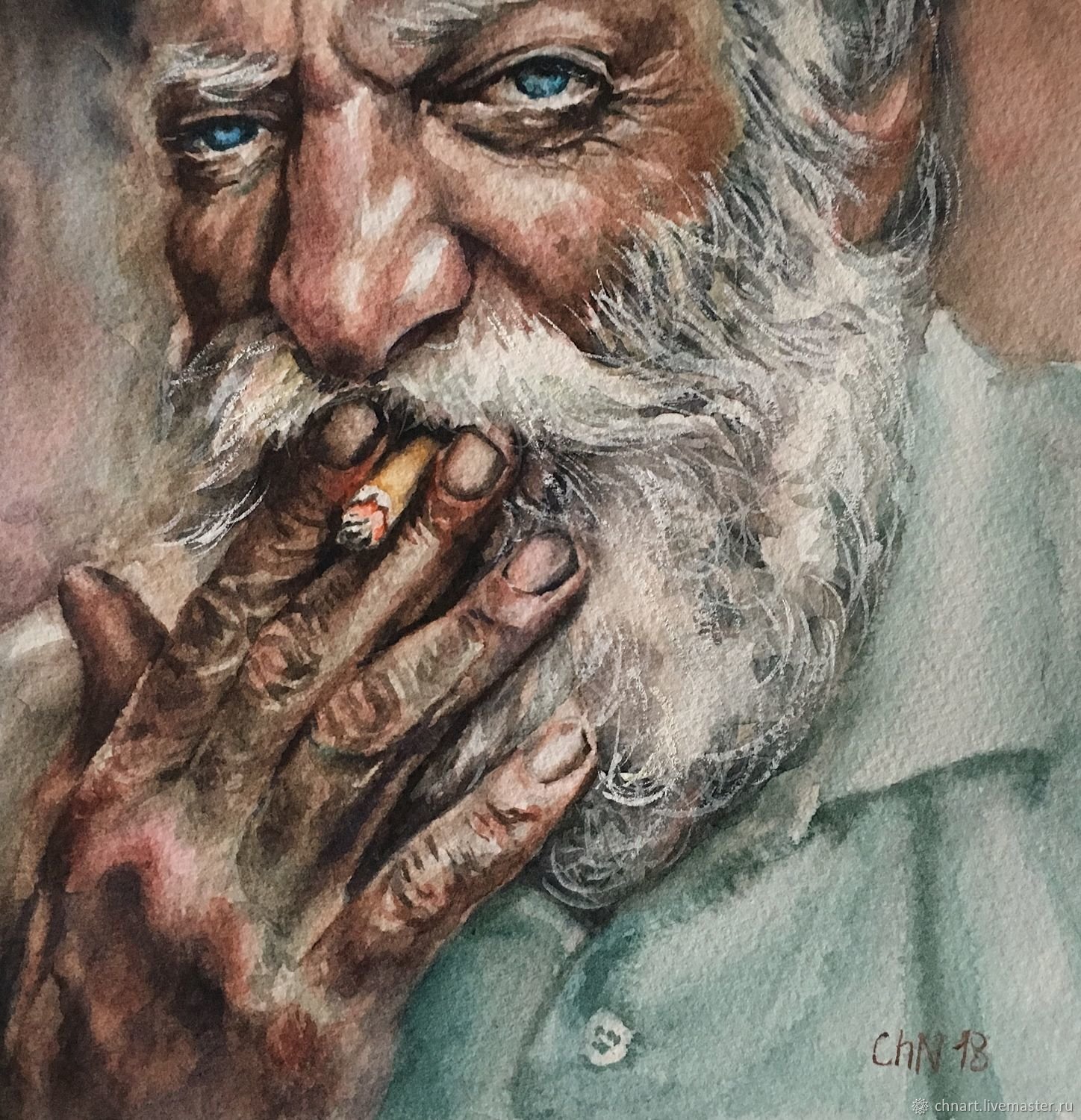 Дедушка акварель