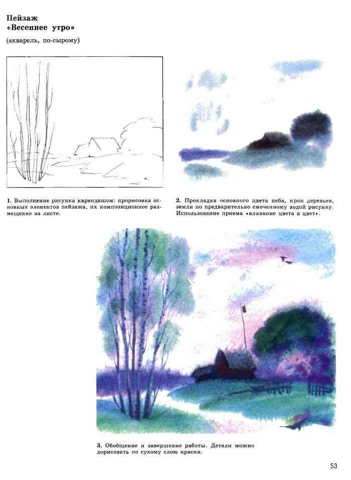 Весенний пейзаж акварелью поэтапно для детей