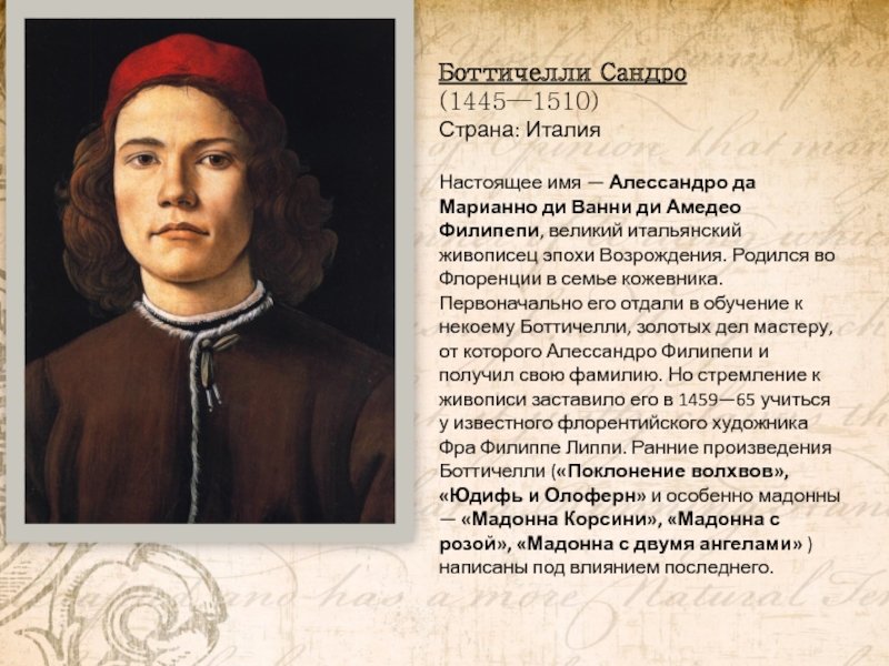 Сандро Боттичелли годы жизни