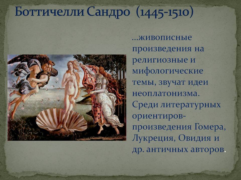 Сандро Боттичелли особенности творчества