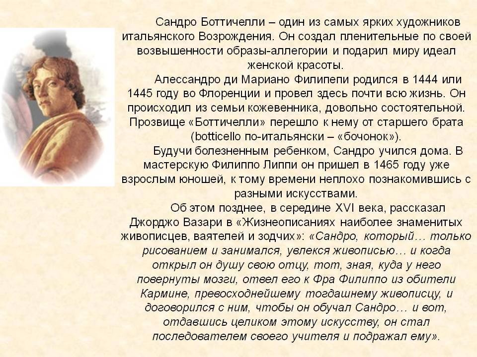 Сообщение на тему Сандро Боттичелли