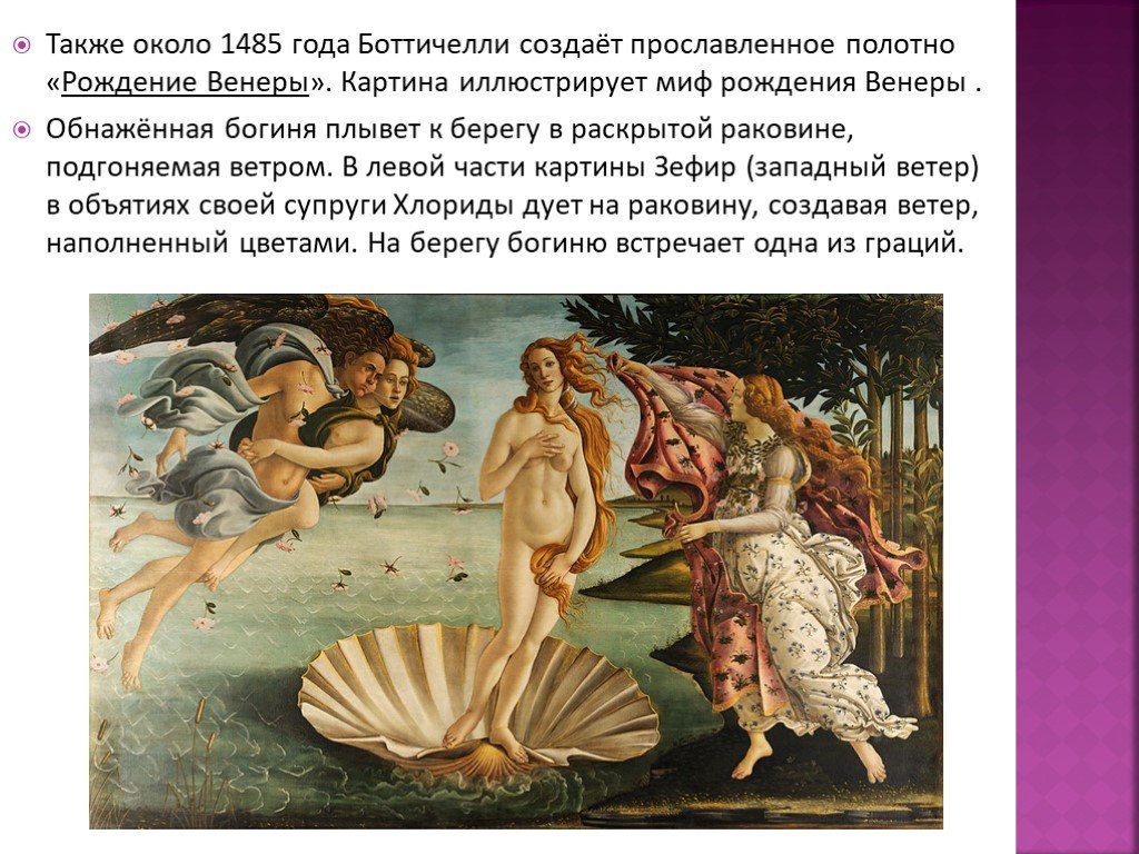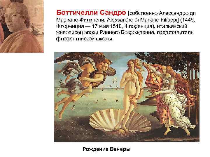 Сандро Боттичелли «рождение Венеры» 1445 г.