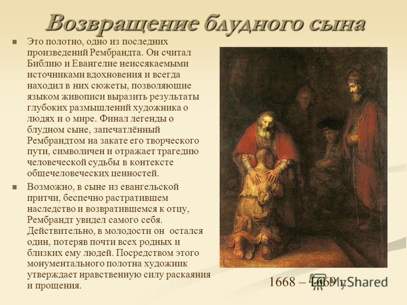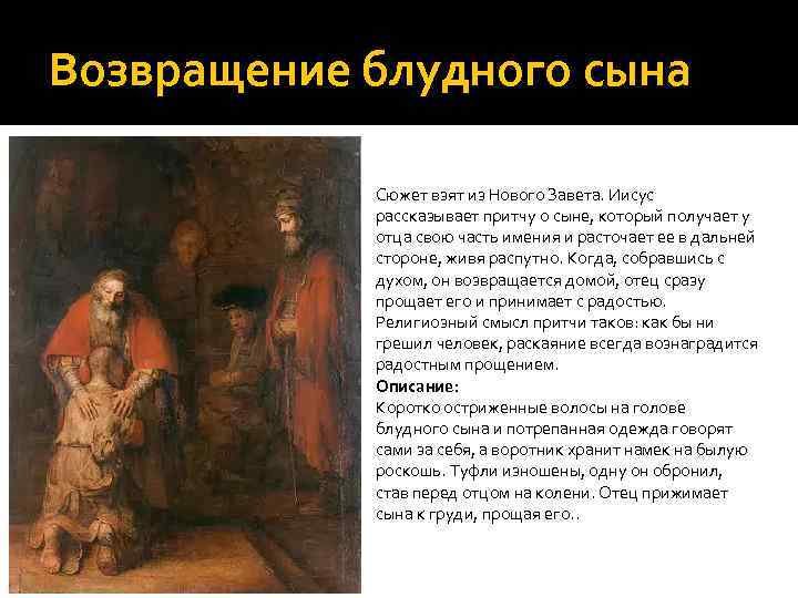Рембрандт Ван Рейн Возвращение блудного сына Обществознание