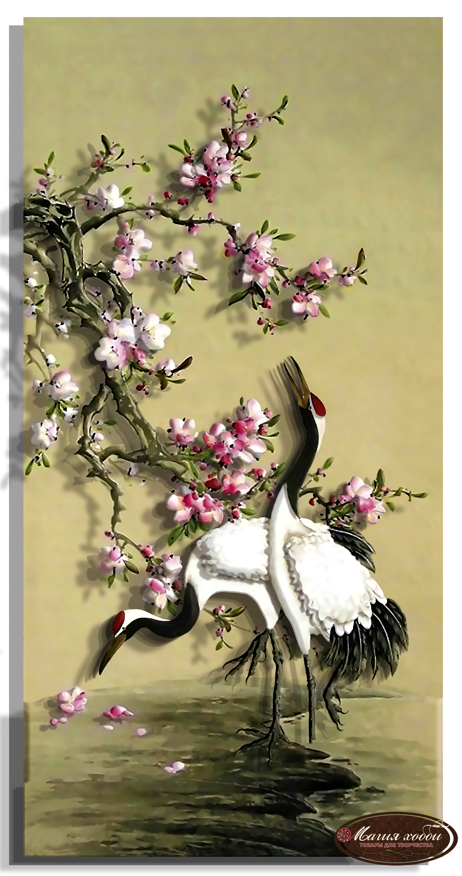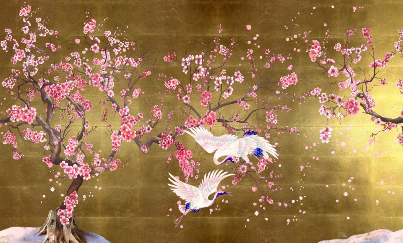 Китайская живопись Журавли и Сакура