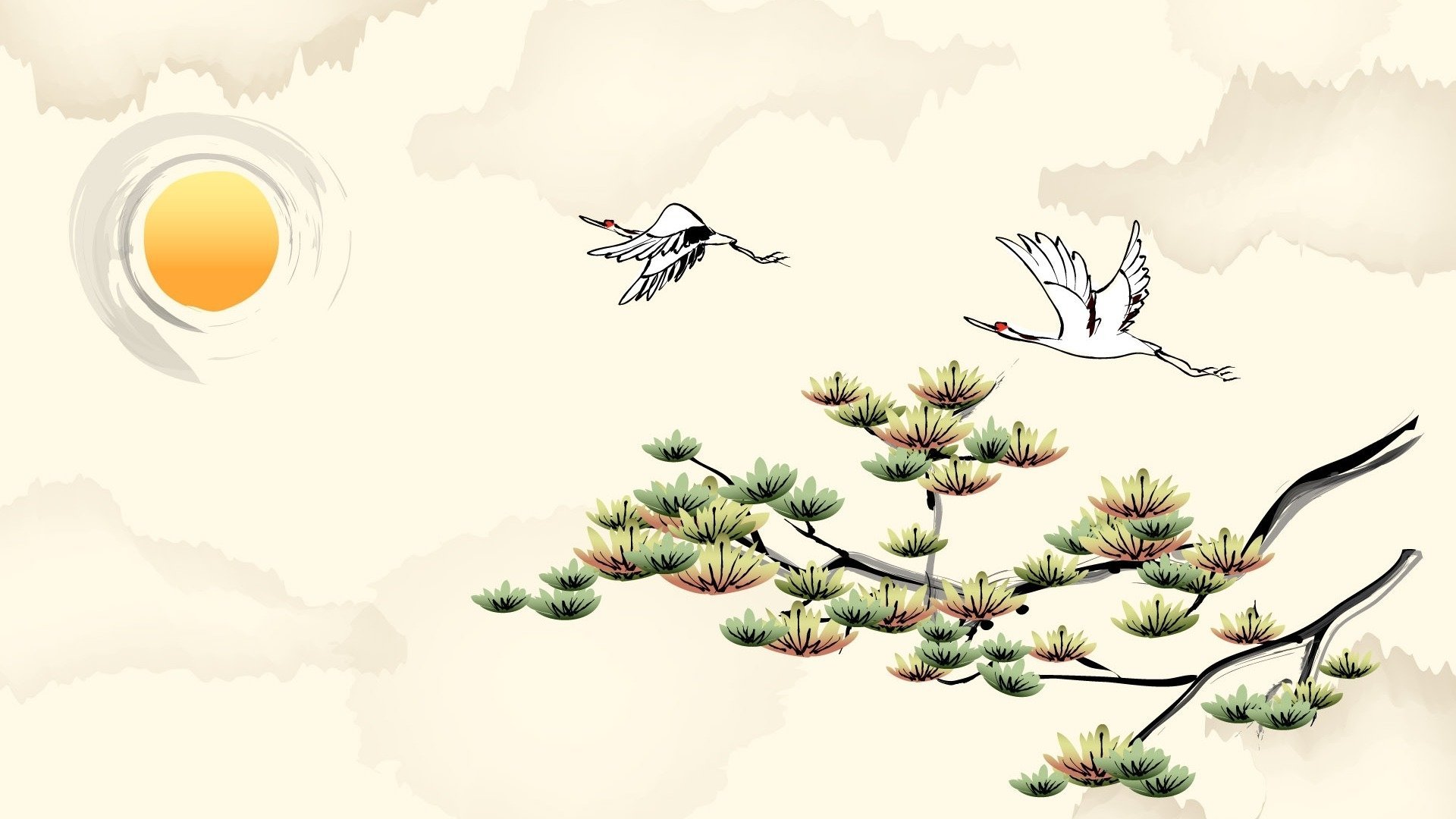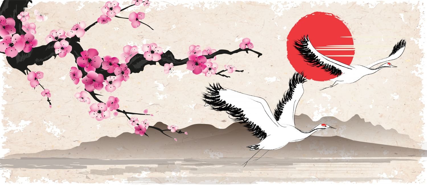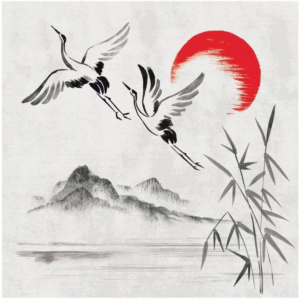 Рисунки журавлей в японском стиле