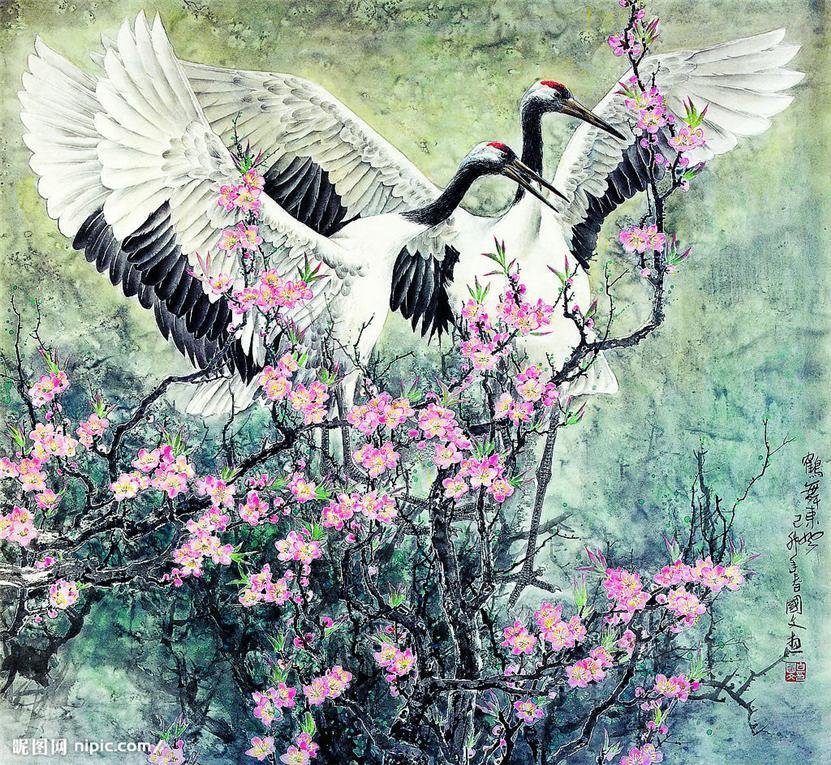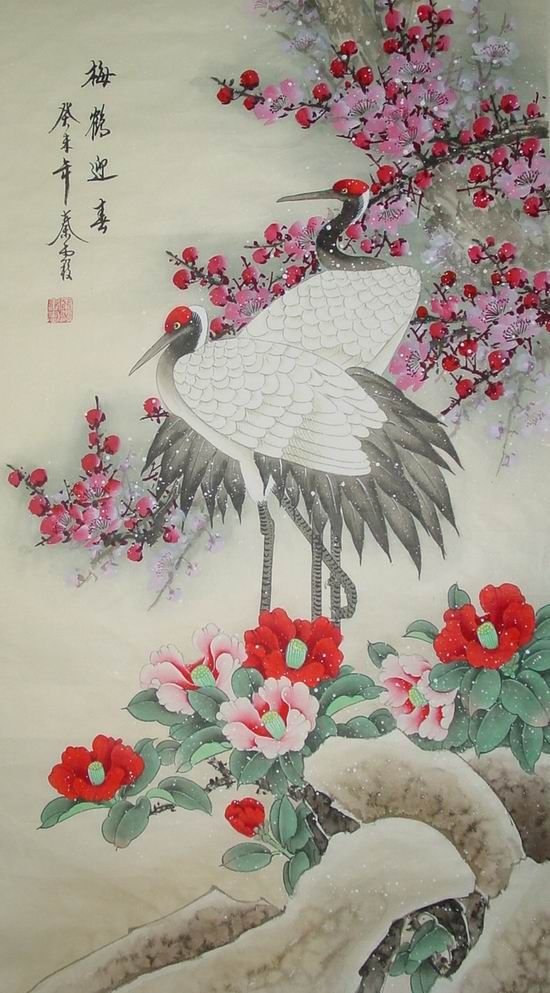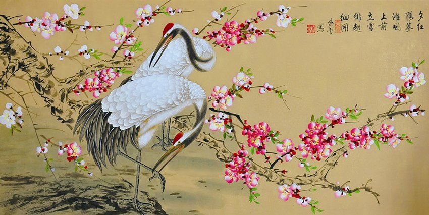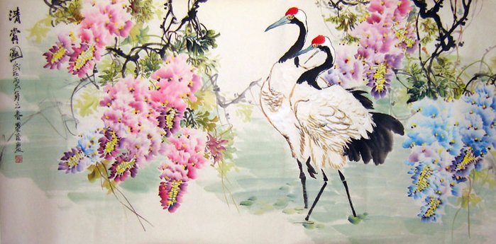 Китайская живопись цветы и птицы Журавли