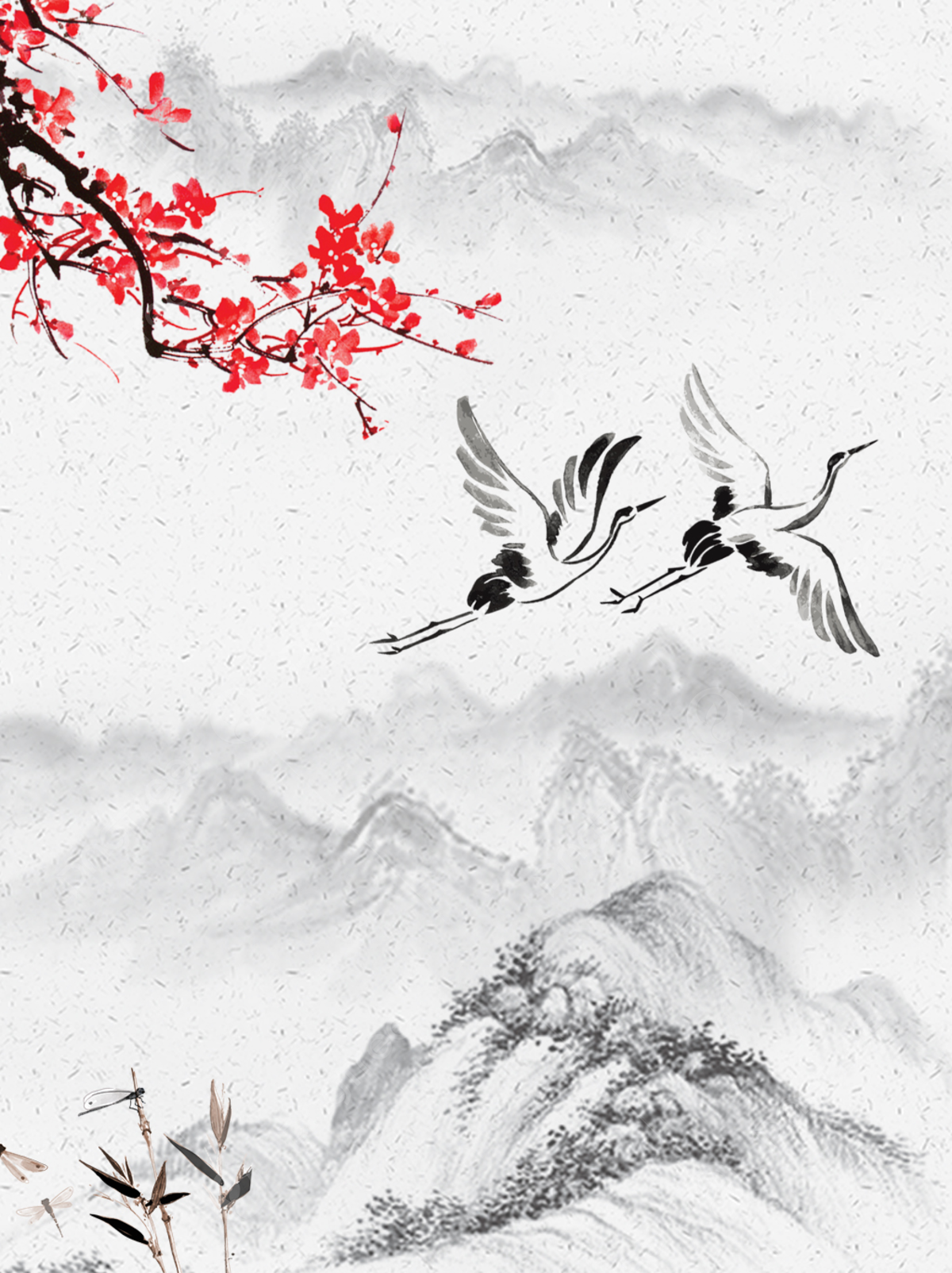 Китайская живопись слива и Журавли